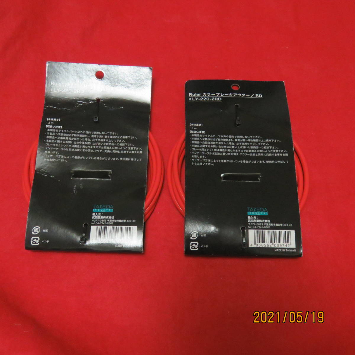 ruler カラーブレーキアウター*2 ケーブルセット 赤色 RED ルーラー