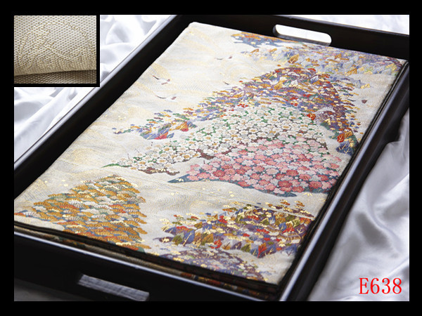 【E638】厳選西陣 名門「となみ織物」 春日紹巴 加賀四季花文様 ベージュ地 六通高級美術袋帯 新品同様 ◇検◇簪着物名古屋帯帯締め
