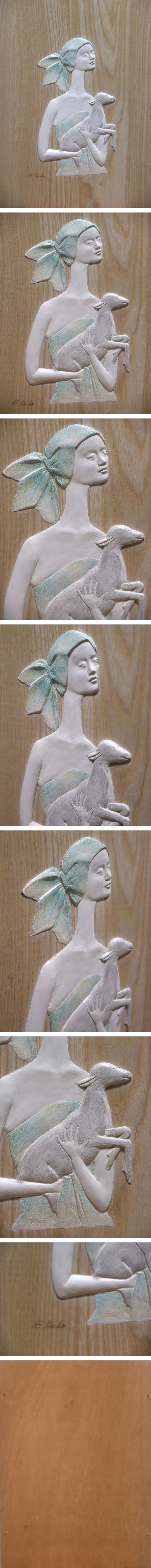 | 説明 | 山羊を抱くすらりとした女性が見事に彫られた壁掛です。 見事な超絶技法をご堪能下さい。 |