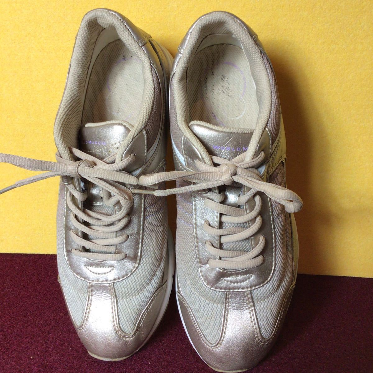 【売り切り!送料無料!】A-103 WORLDMARCH!24.5cm!ゴールド!スニーカー!ウォーキングシューズ!中古!