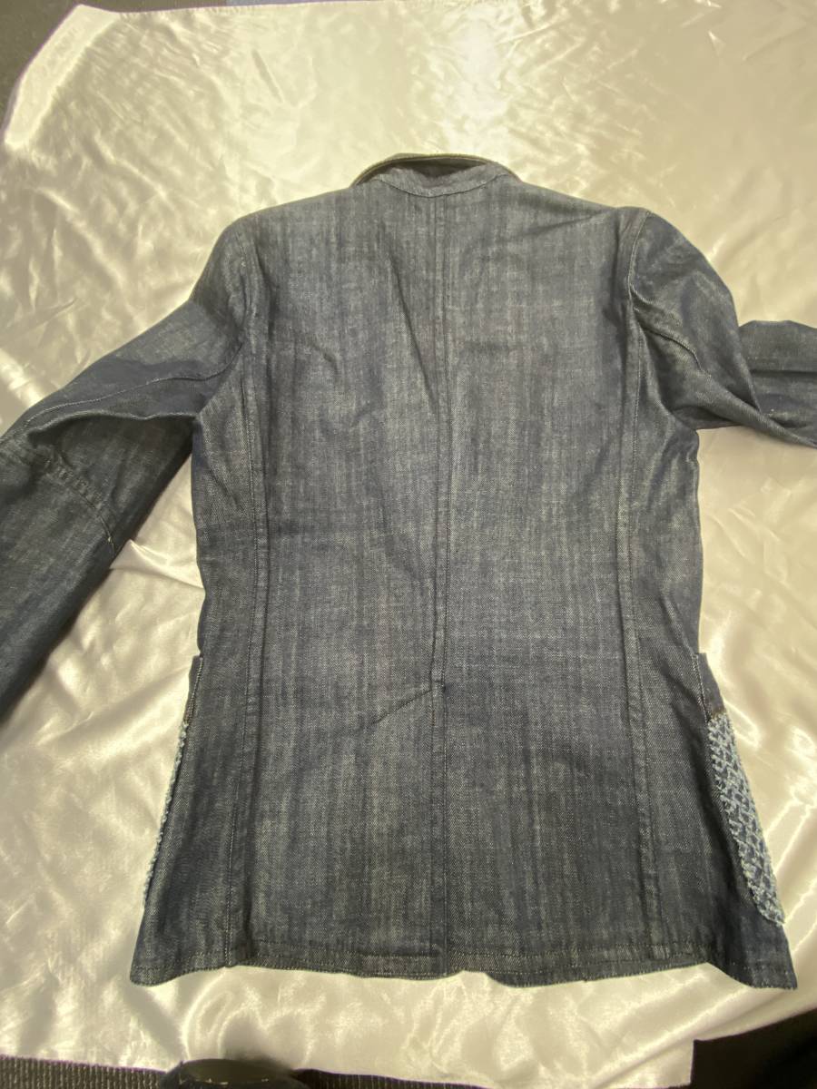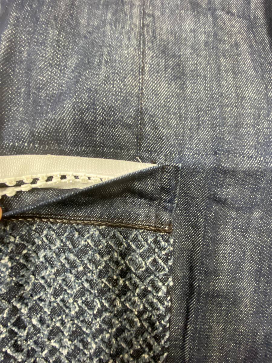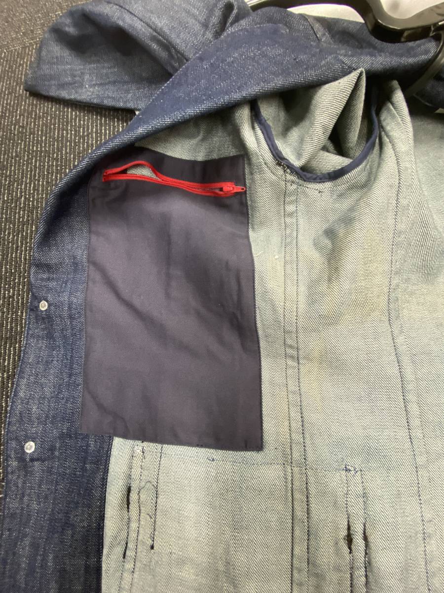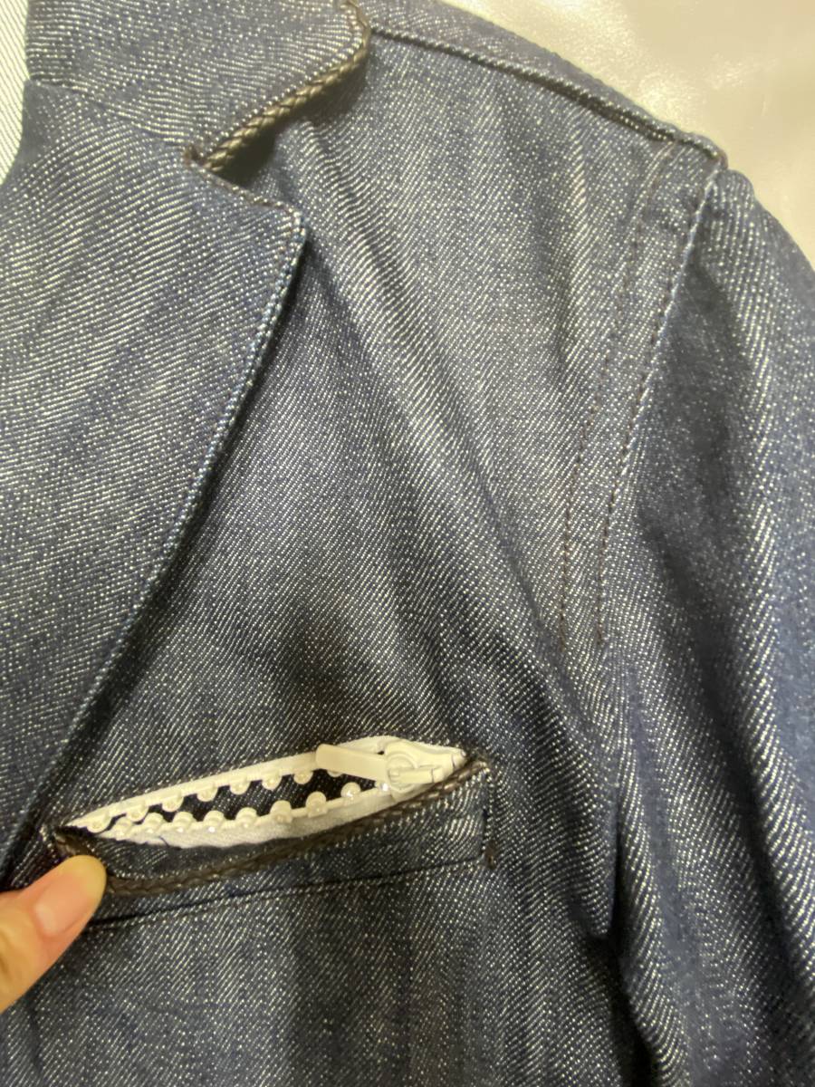 リメイクで、胸ポケット口、ポケット口の内側にスワロフスキーのファスナー付けています。(表からは見えません)