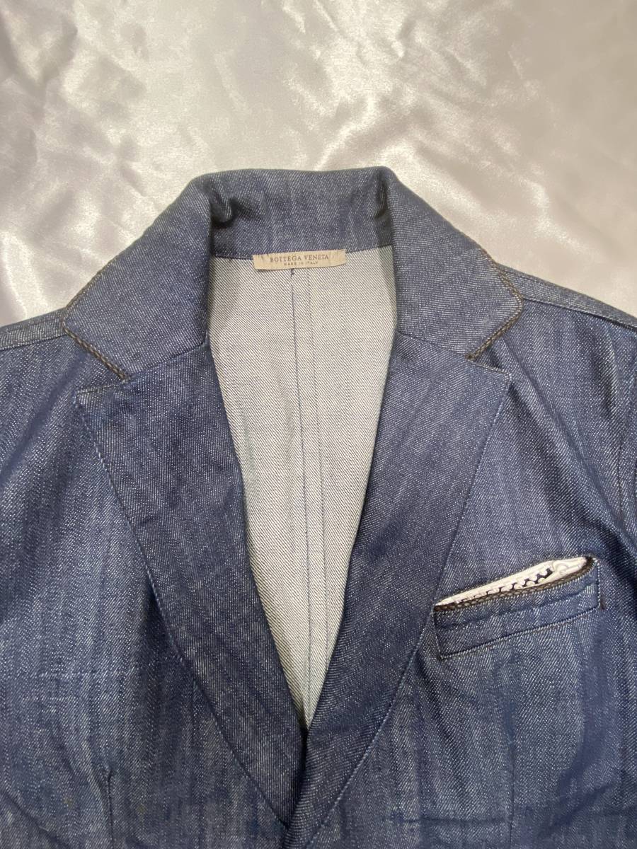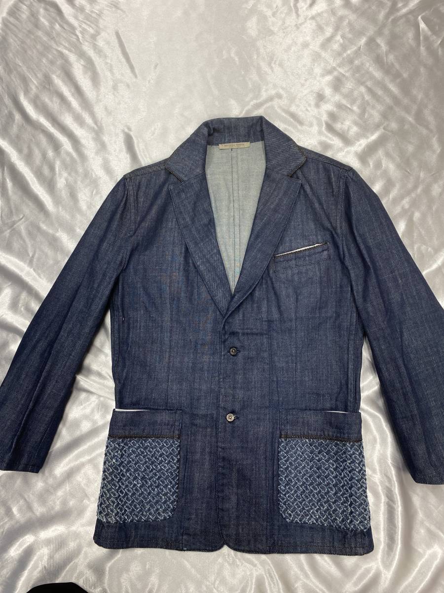 襟、ポケット口にボッティガらしいレザーのトリミング施されています。