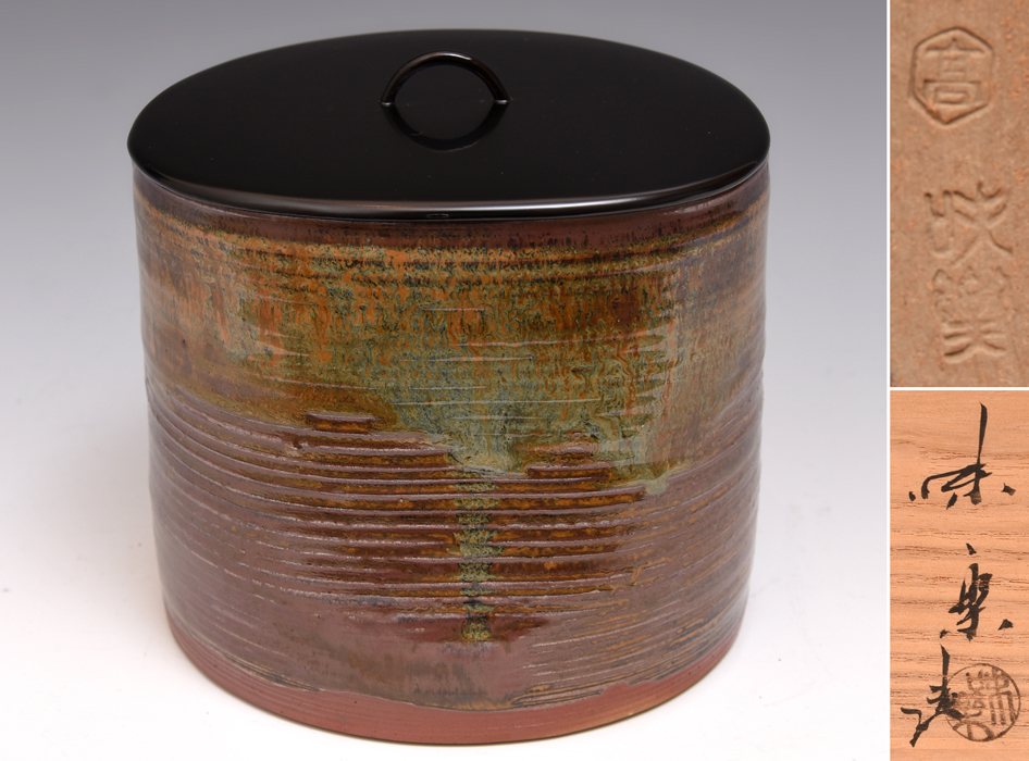 十四代 亀井味楽(造)高取水指 共箱 塗蓋 茶道具 遠州七窯 遠州好 現代工芸 美品 |