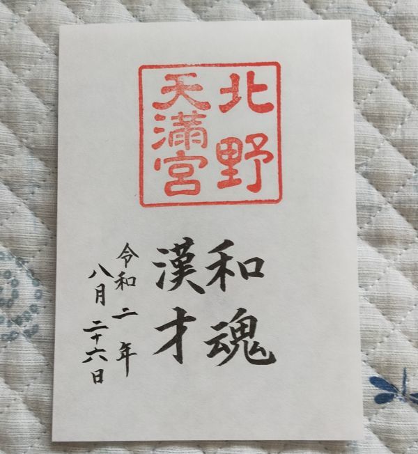 ◆北野天満宮(京都)◆御朱印「和魂漢才」 令和2年(2020年)8月 |
