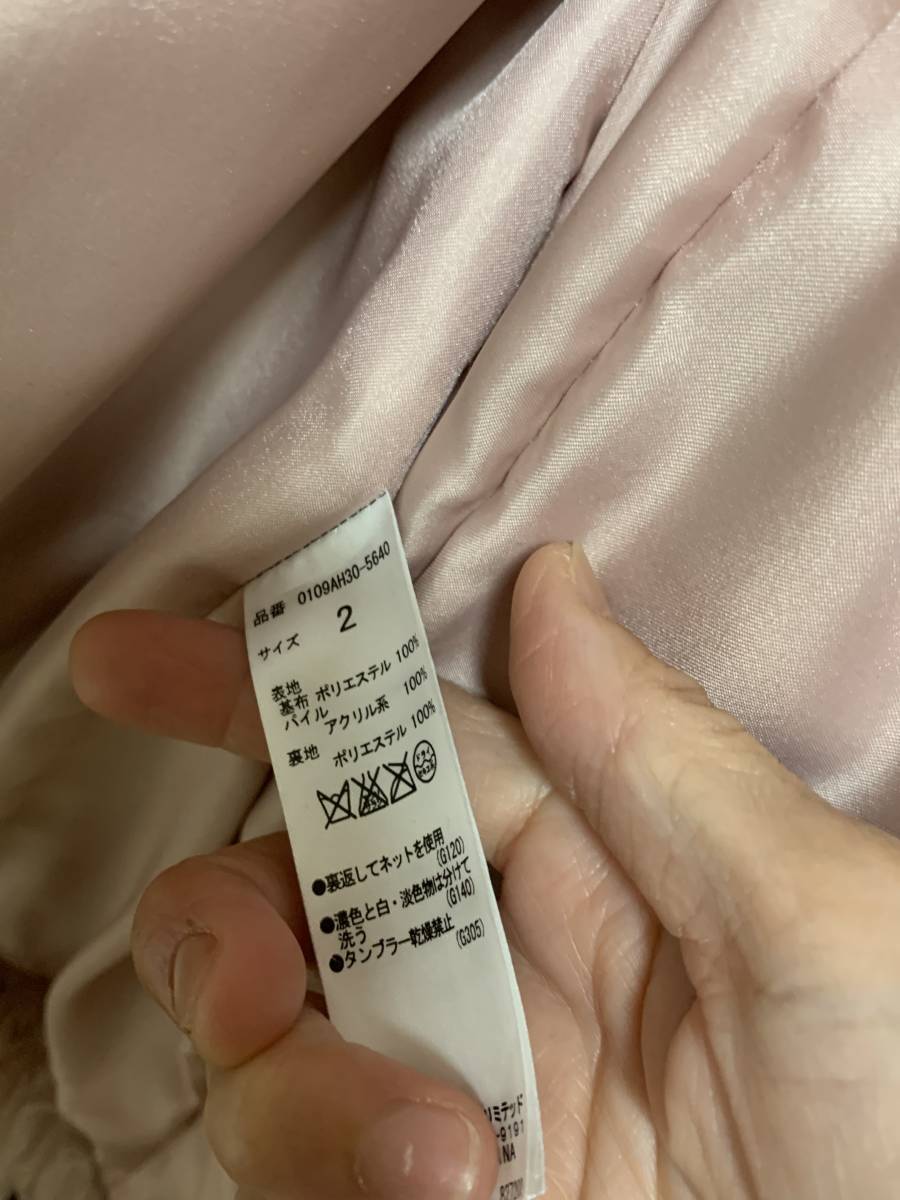 マウジーのゴージャスなコートです。サイズは2です。着丈は90センチになります。1~2回の着用で美品です。