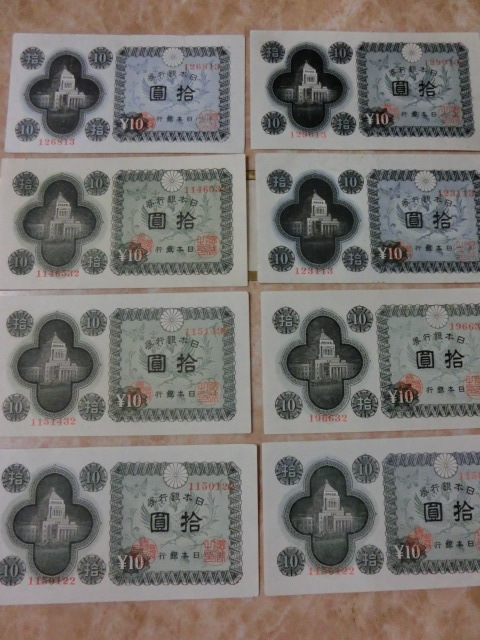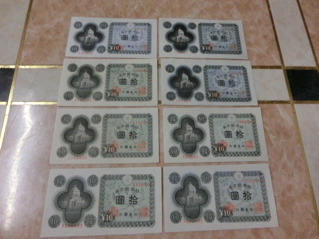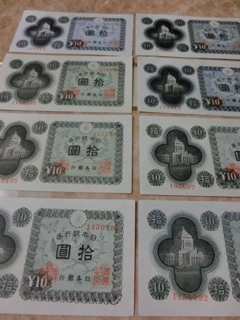 日本銀行券A号10円 議事堂10円の極美品~美品を8枚セットです。