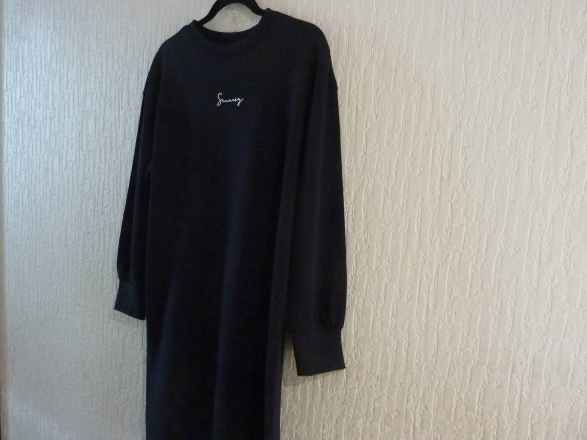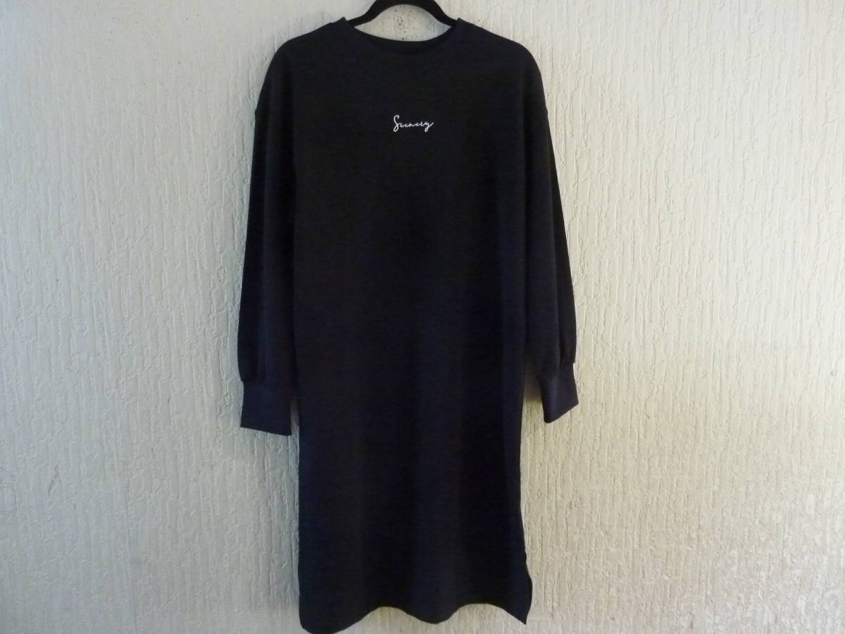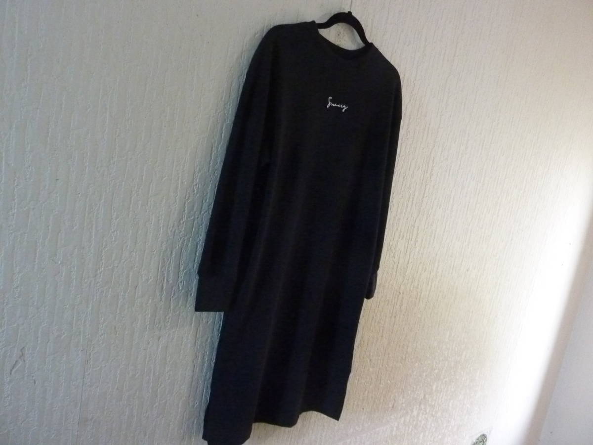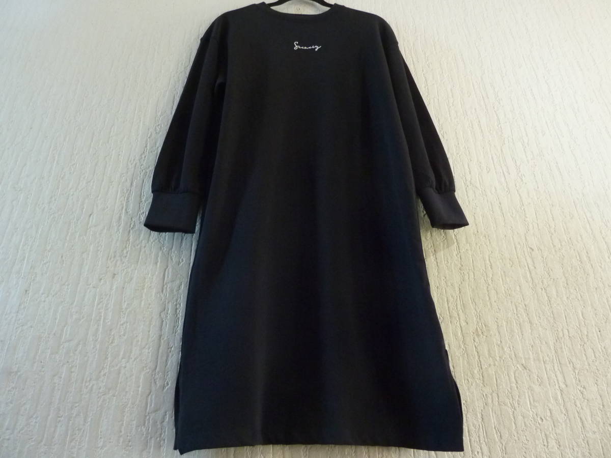 ★★ロングチュニックワンピース☆フロント文字刺入り★ブラックカラー★レディースサイズS(Mサイズ並みの大きさ)★新品未使用タグ付★★