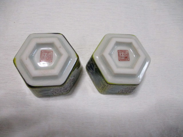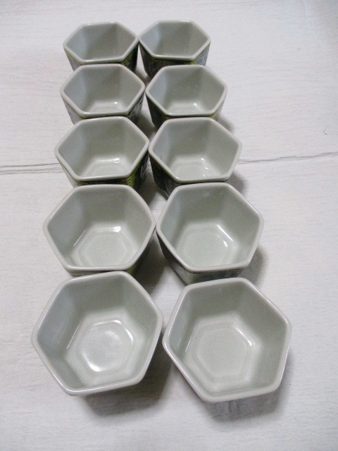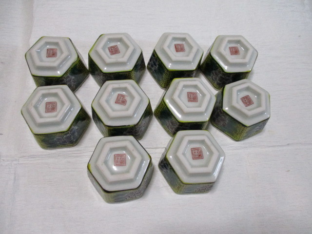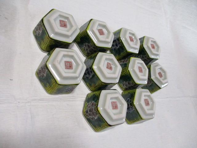 九谷 組盃 10客 未使用 共箱 六角形 角福