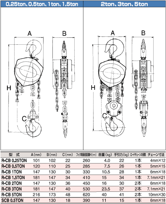 | 【チェーンブロック】 | R-CB 3TON (揚量:3ton/標準揚程:3.0m) | |
