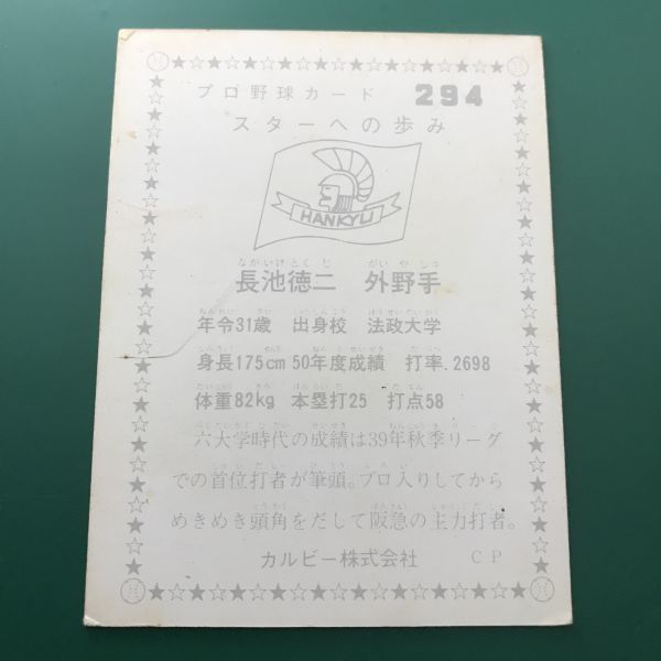 1976年 カルビー プロ野球カード 76年 294番 スターへの歩み 阪急 長池    【管理NO:3-49】