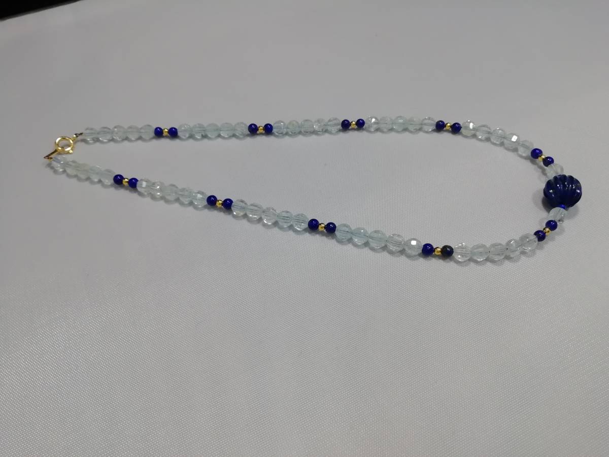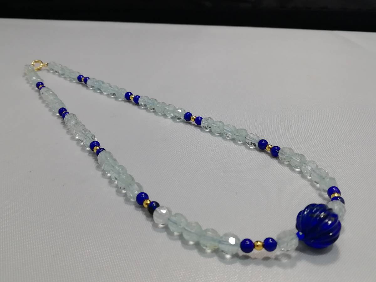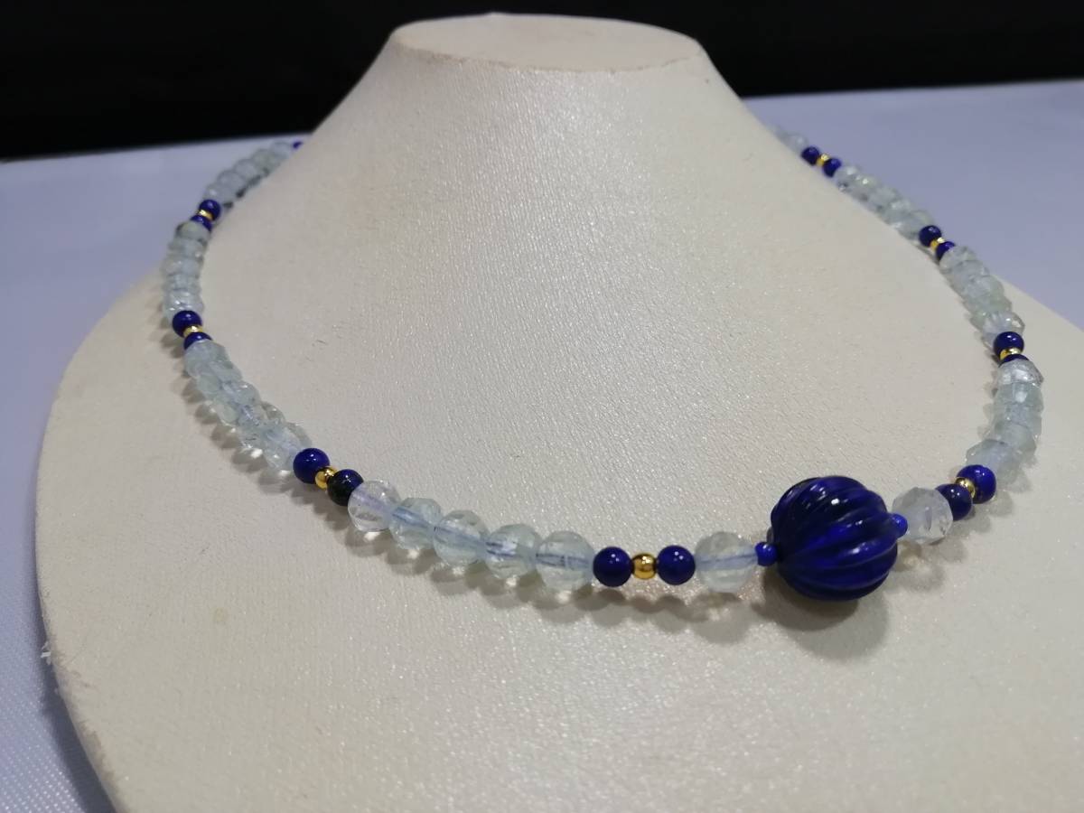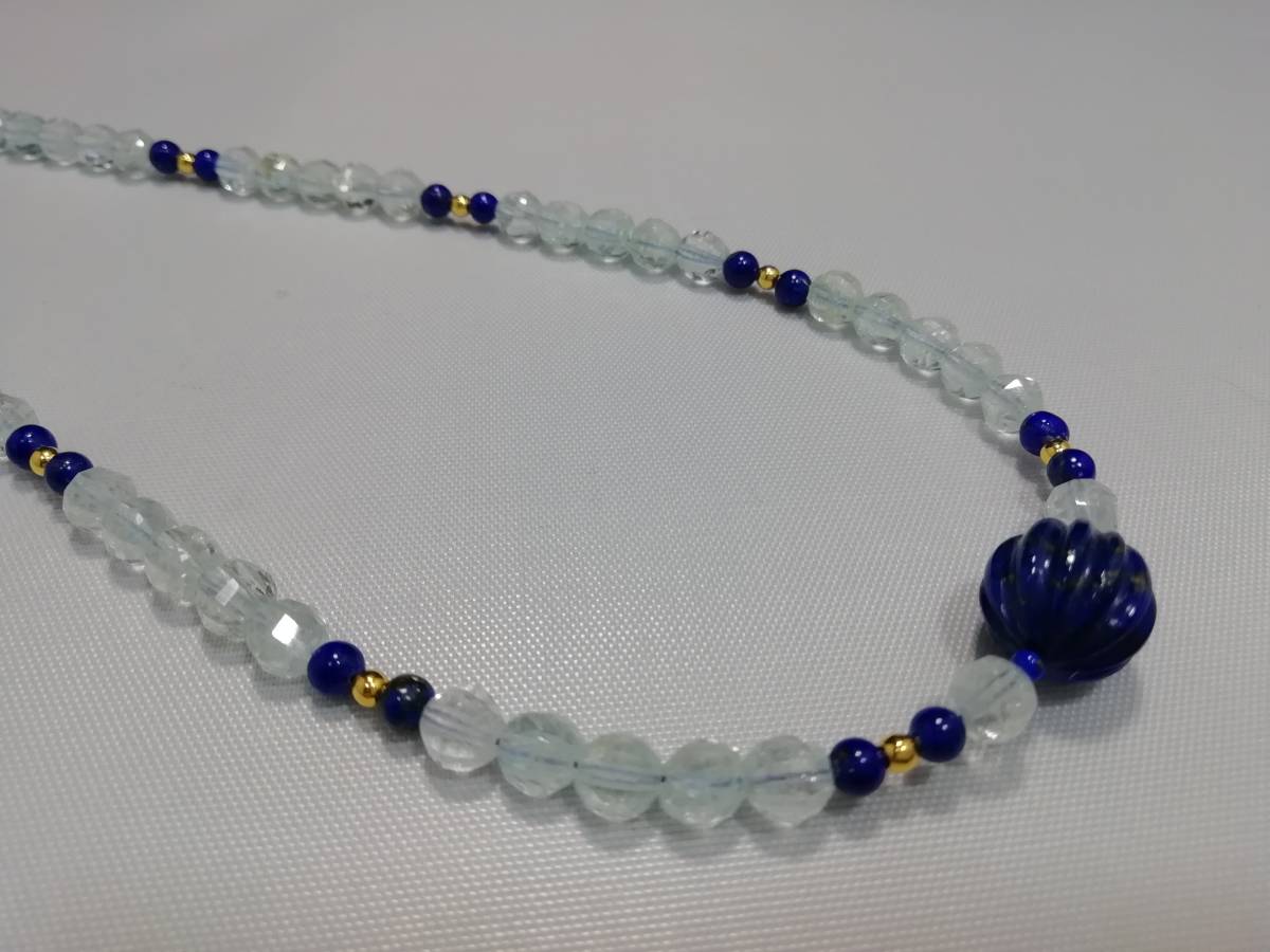 アクアマリン128面カットラピスオリジナルデザインネックレス