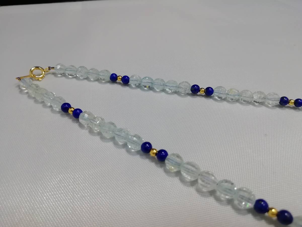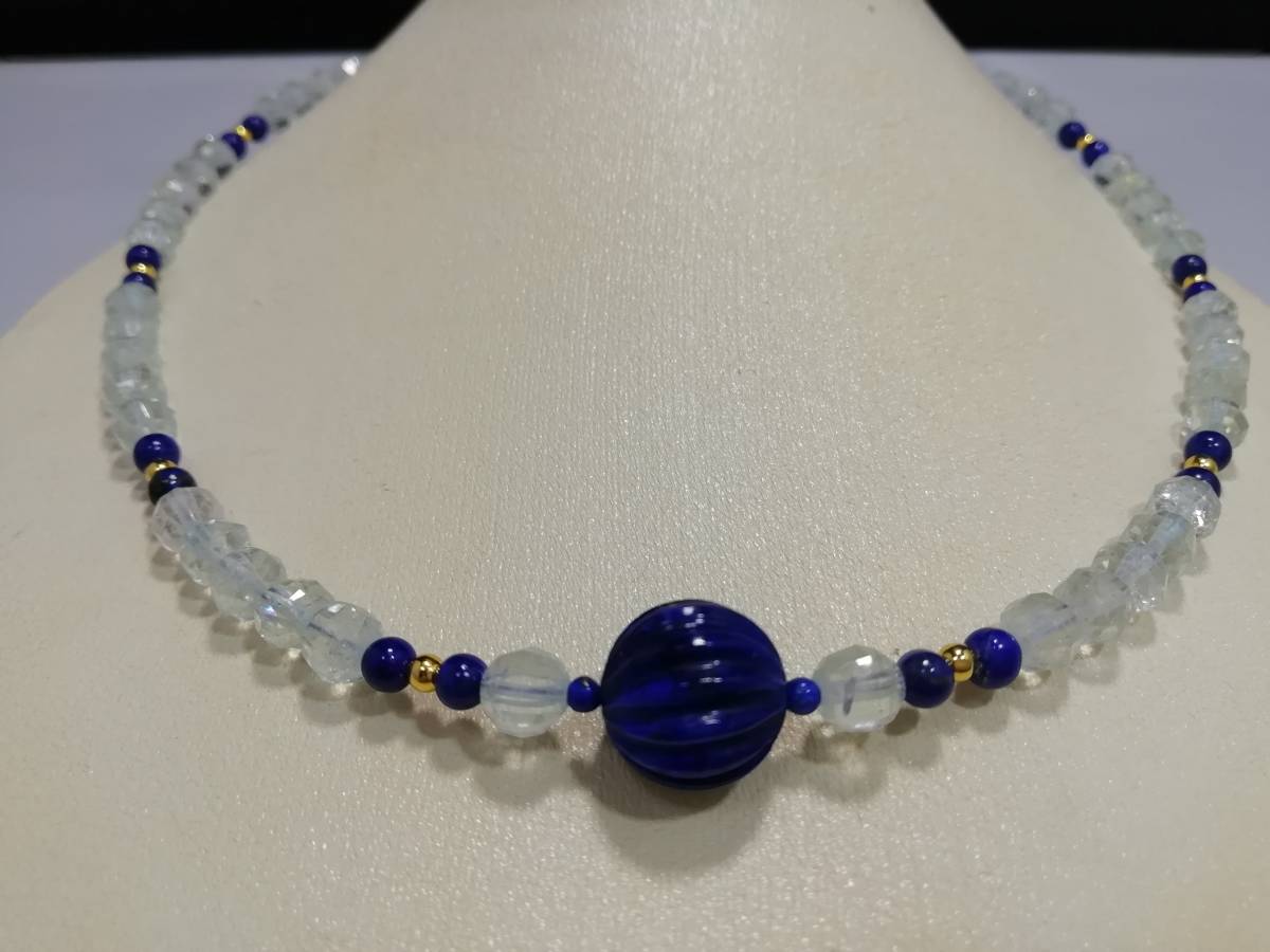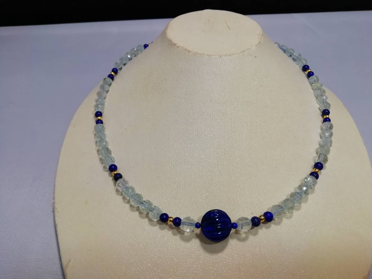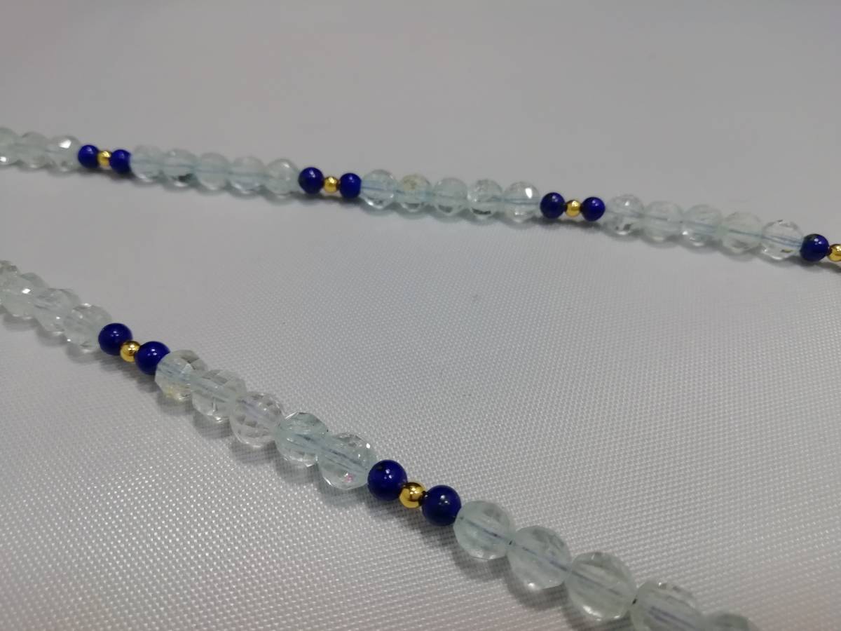 アクアマリン128面カットラピスオリジナルデザインネックレス