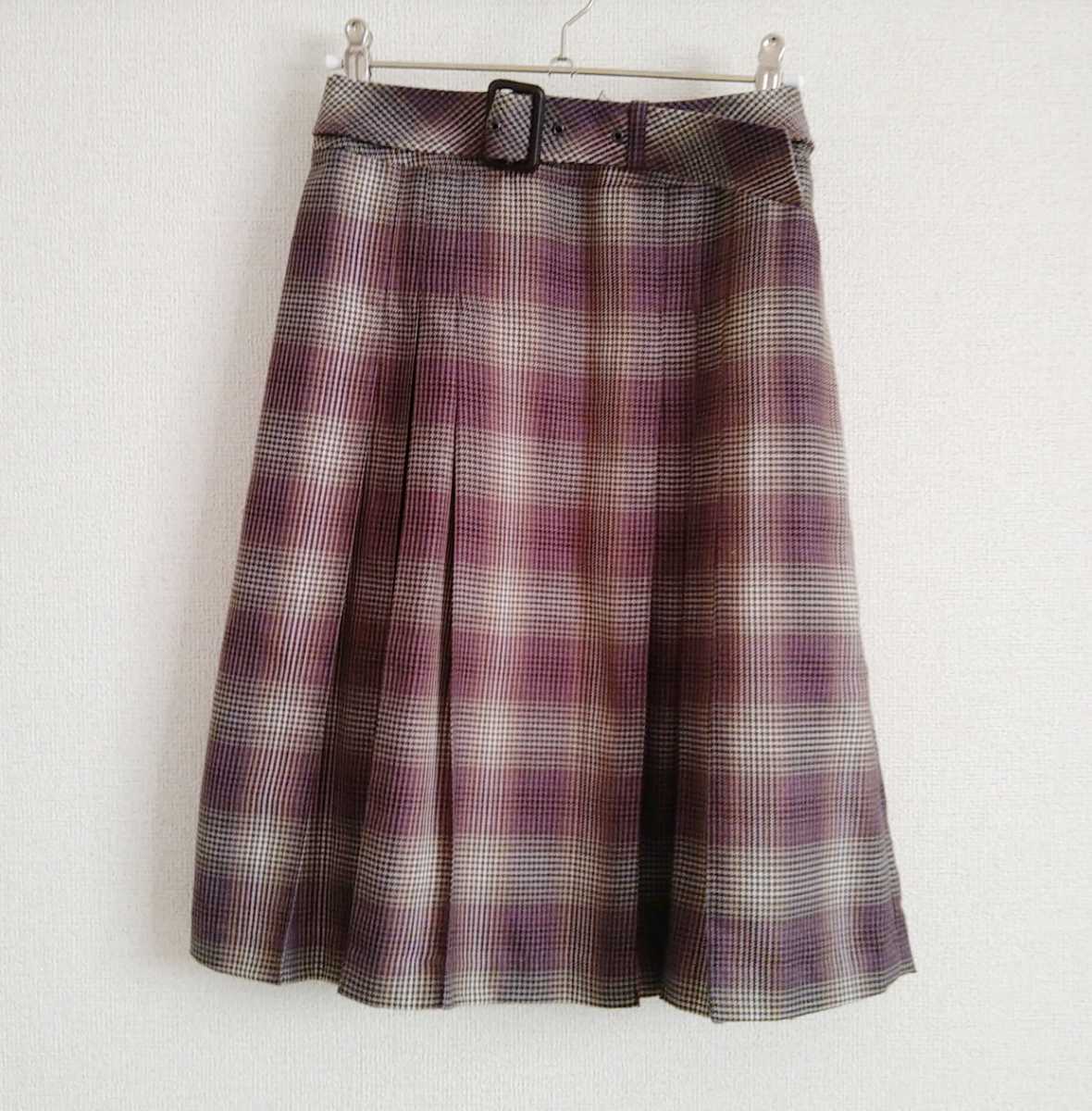 clear impression クリアインプレッション 千鳥格子柄プリーツスカート ベルト付き S
