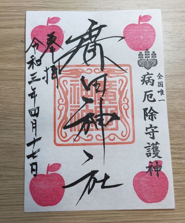 ◆廣田神社(青森)◆御朱印「廣田神社」 令和3年(2021年)4月 ご当地版「りんご」 |