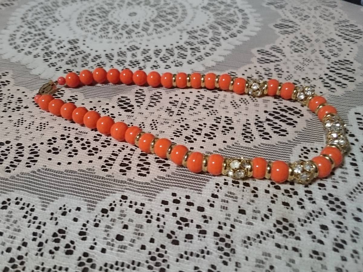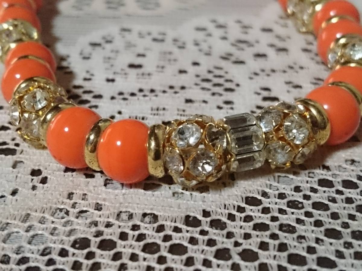 これからの季節によくマッチする、オレンジ色のネックレスです。