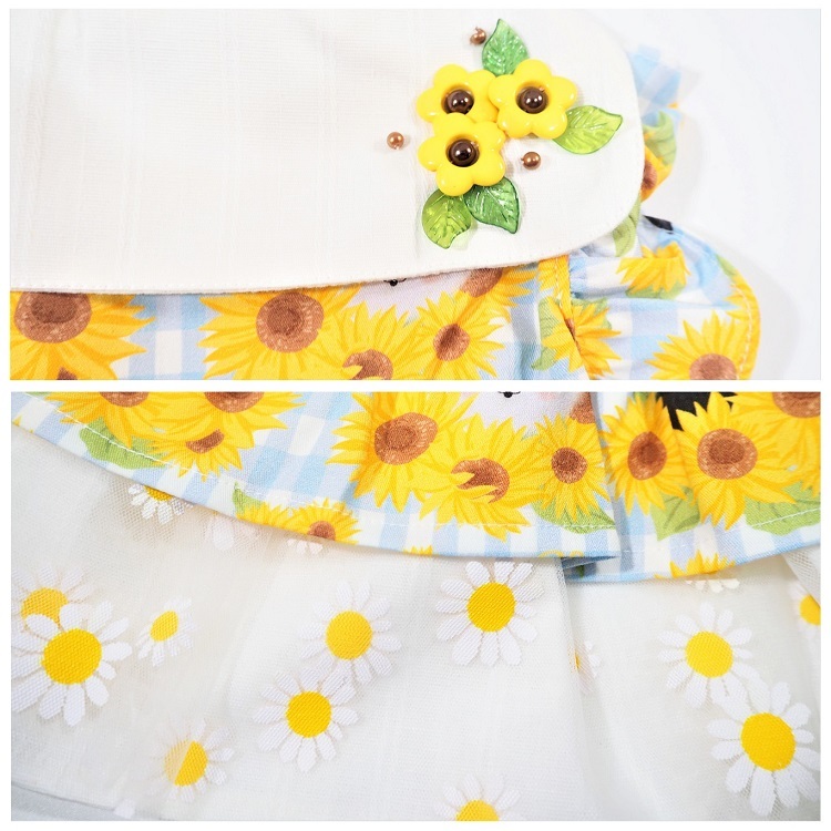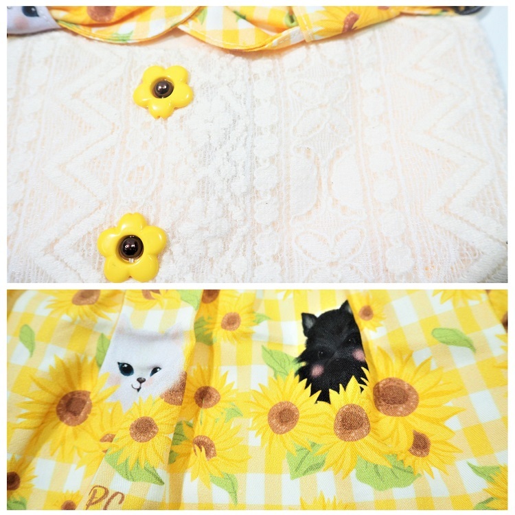 デカ襟風向日葵柄ワンピ