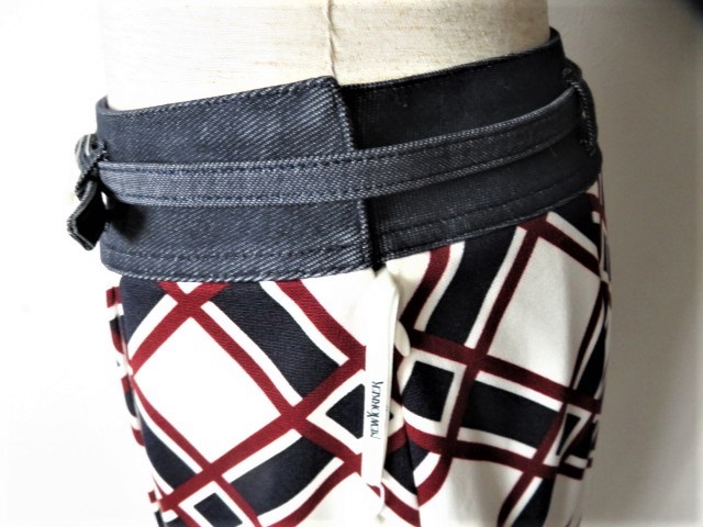 ■新品20,900円綺麗な上質美品【NEW TYORKER】ニューヨーカ レトロ柄 ベルト付き高級スカート デニムスカート 9号M 送料198円 b1033