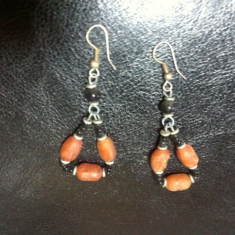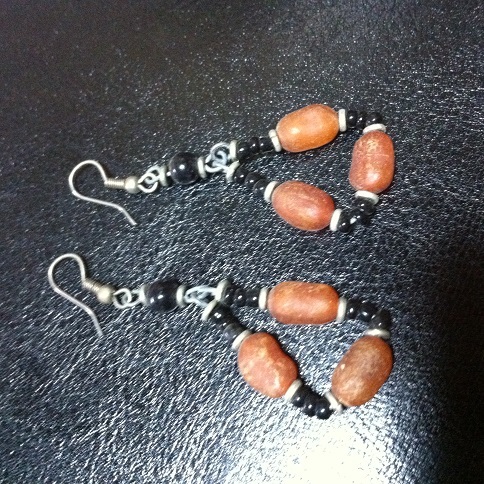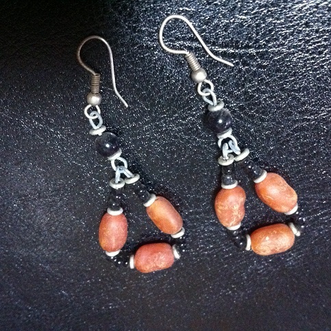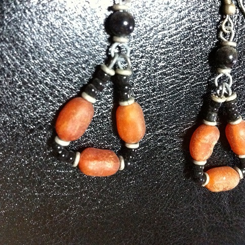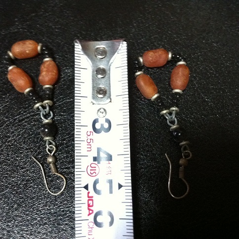 オレンジ×黒 ガラスビーズゆらゆらピアスorイヤリング アジアンエスニック民族 タイインドバリアフリカン雑貨 プチプラアクセ