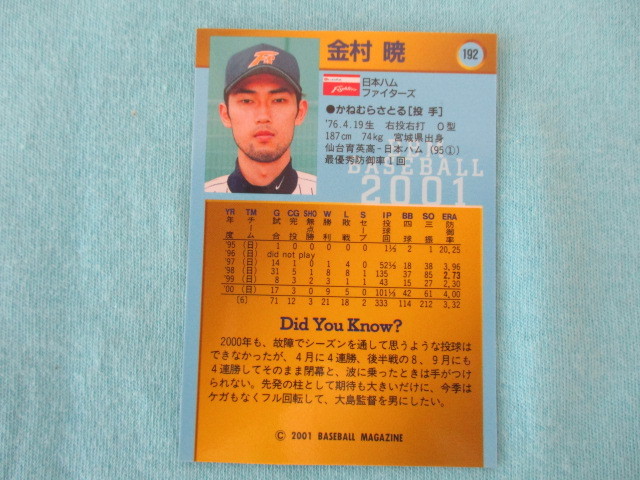 ★BBM 2001★〔192 金村暁 日本ハムファイターズ〕サイン(印刷) トレカ♪