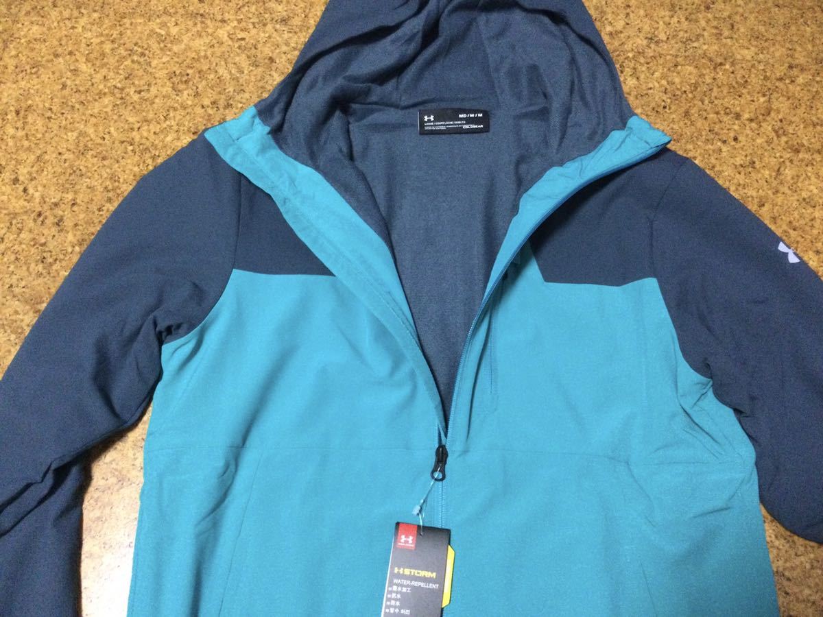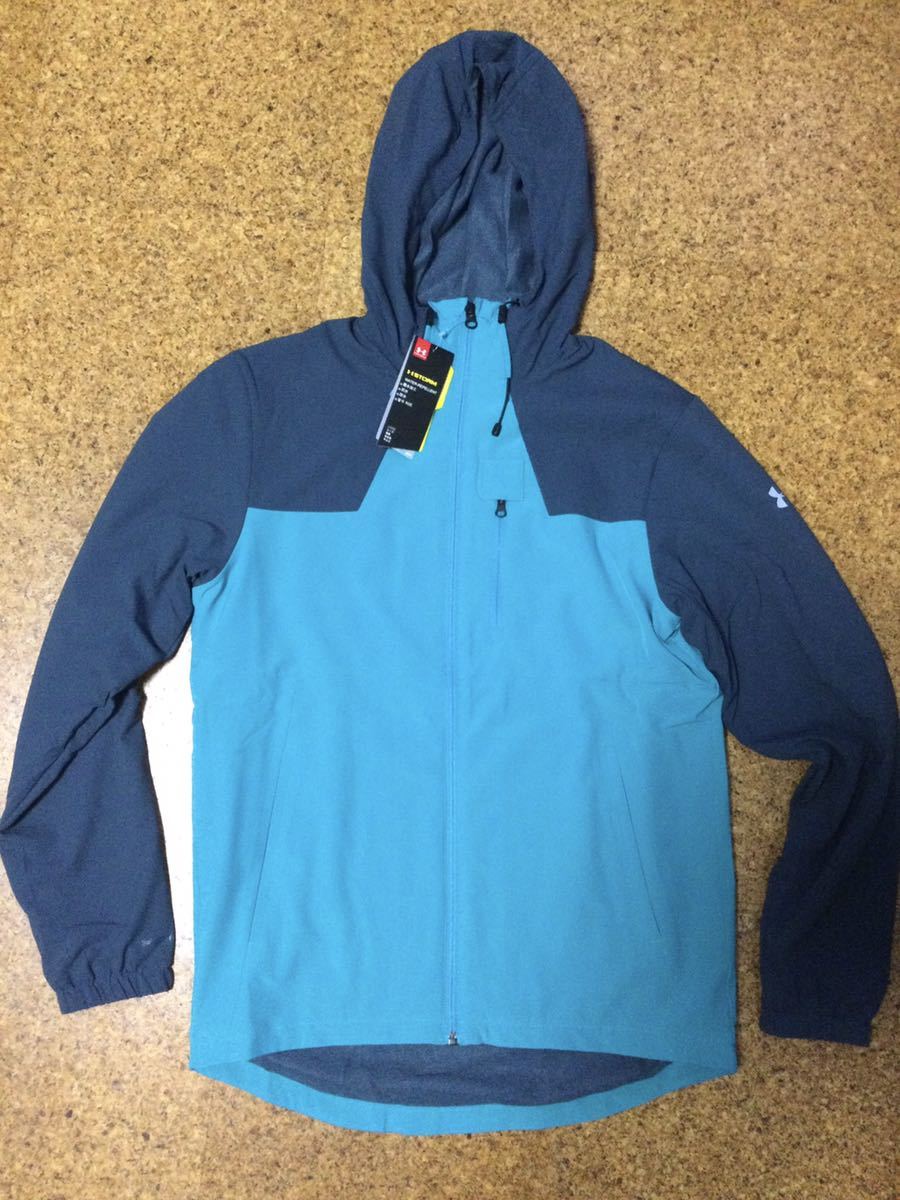 チェストに施されたUA Stormテクノロジーのウーブンパネルが撥水効果と優れた耐久性を発揮