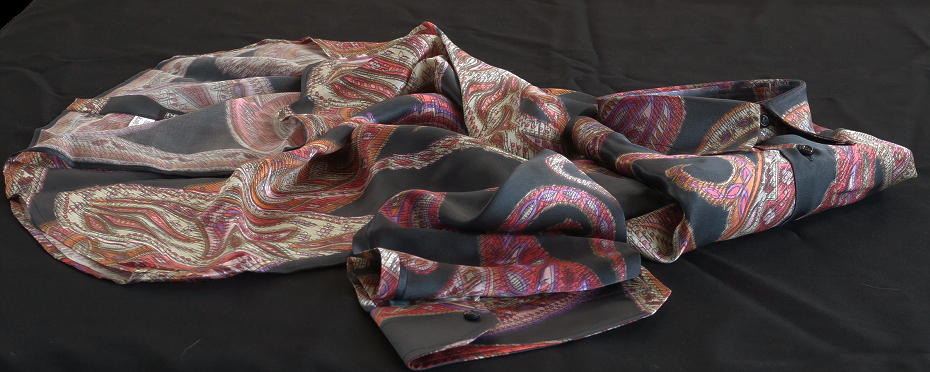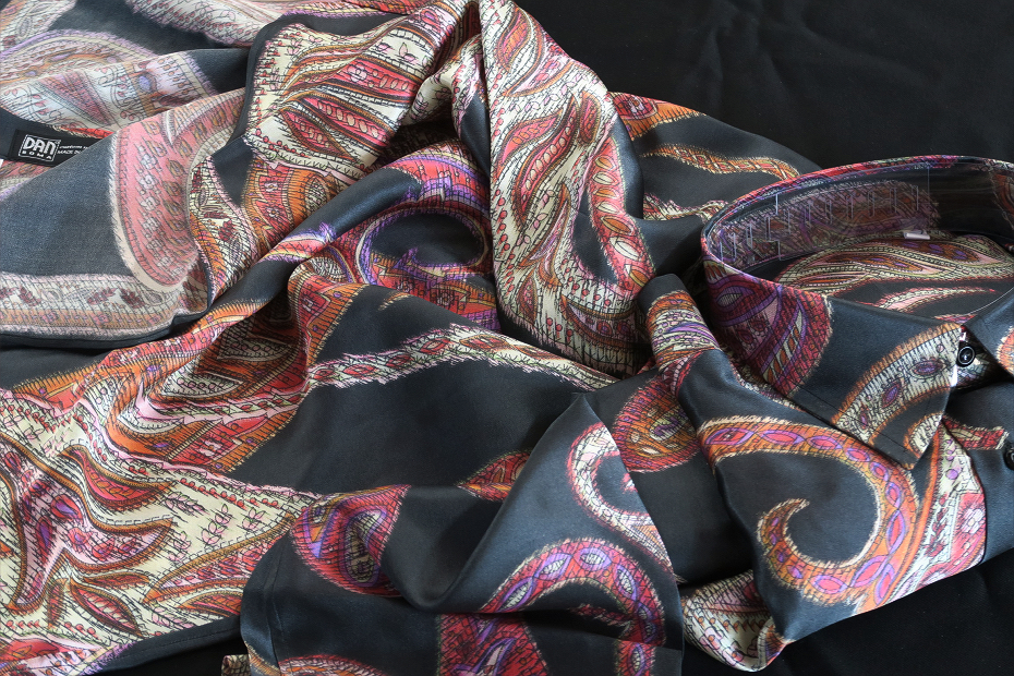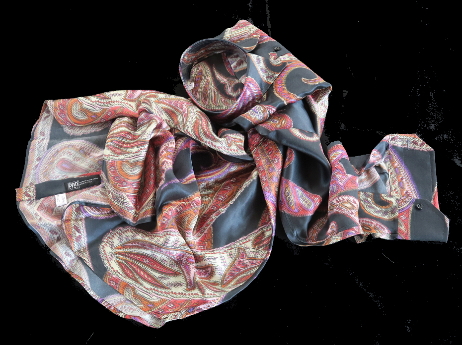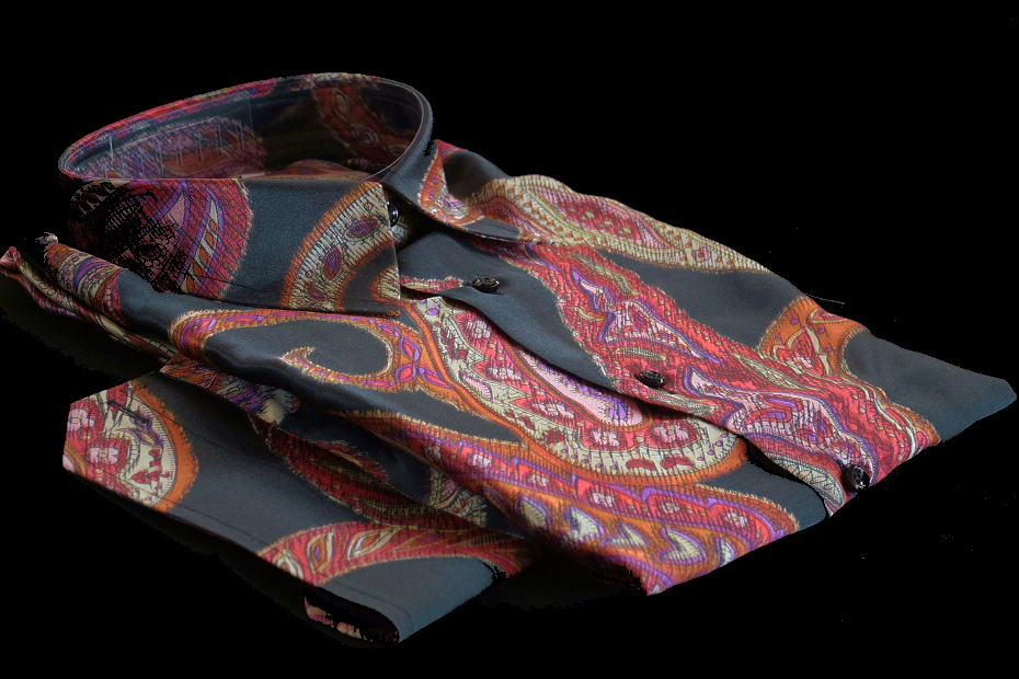 ★イタリアシルクシャツDAN ROMA COLLO REGLARE 普通衿 Limited Edition 676 赤と黒大胆不敵にペイズリー・・♬~ L 42-93