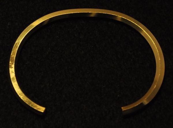 対辺4mmの真鍮六角棒から製作しております。シンプルなバングルです。