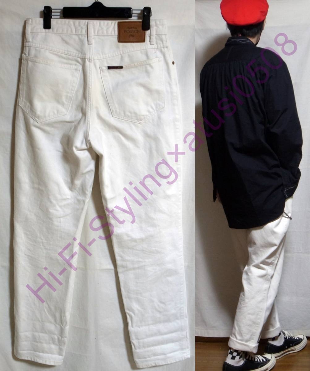 ご回覧ありがとうございます。お手数ではございますがトラブルの元になりますので、説明文は最後までお読み下さい。 着画がある場合のモデルは177×62位の男性です。値下げ交渉はご遠慮下さい。 こちらは90'sのBOBSON / ボブソンのホワイトデニムです。サイズ表記は81cm(32)です。実寸も明記しておりますので参考にして下さい。 vintage clothingで希少です。こちらのカラーは特に生産数が少なくレアカラーになります。 状態はused clothingで白色なので多少うす汚れがあります。穿いてて気になるものではないと思うので普段からコーディネートに古着も合わすお洒落さんなら問題無いかと思います。神経質な方はご遠慮下さいませ。 サイズ表記 81cm(32) 実寸平置き(ウエスト幅40㎝位、股下82㎝位、股上29㎝位、もも幅29㎝位(股下線から)、裾幅20㎝位、幅×2でおおよそ円周となります。) ※着画モデルは177×62位の男性です。 ※特殊なアイテムの素人採寸ですので多少の誤差はご了承の上ご参加ください。 |