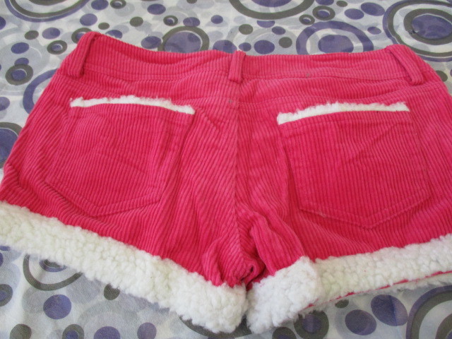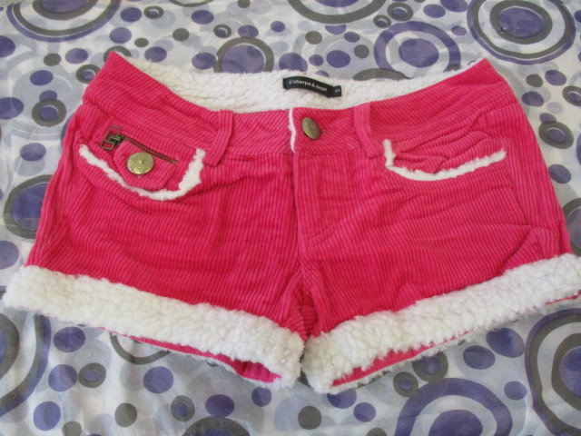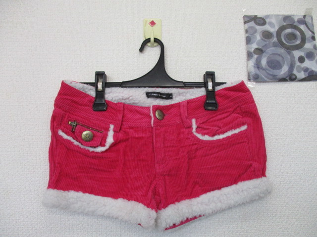 ★ E’charpe & deux ボア付 コーデュロイ ショートパンツ < S > 濃いピンク色 金ボタン ポケット付
