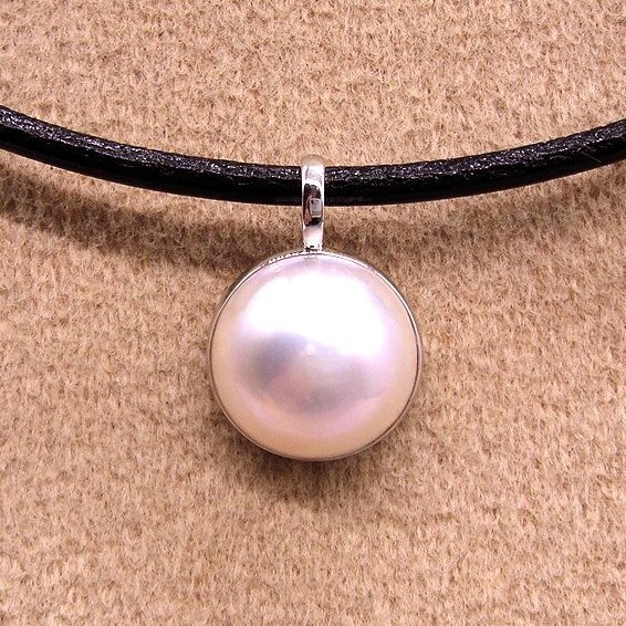 PN520:K18WG マベパール ペンダント (SV皮ひもネックレス付)