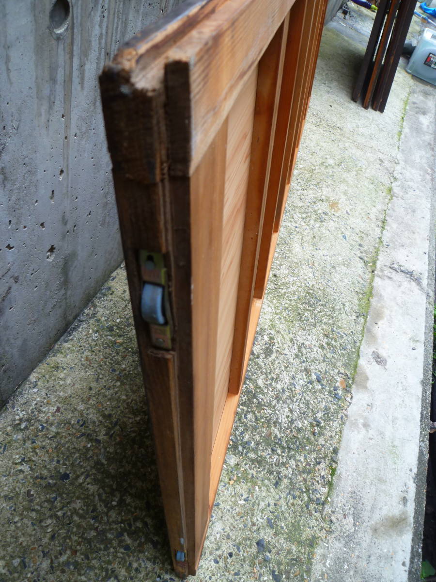 M7654 古民家ビンテージ 木製引戸 雨戸 車輪 塗装剥がれ185.5cm横68cm (0303)【送り先は会社 事務所 店舗限定】【個人様は西濃運輸局留め】