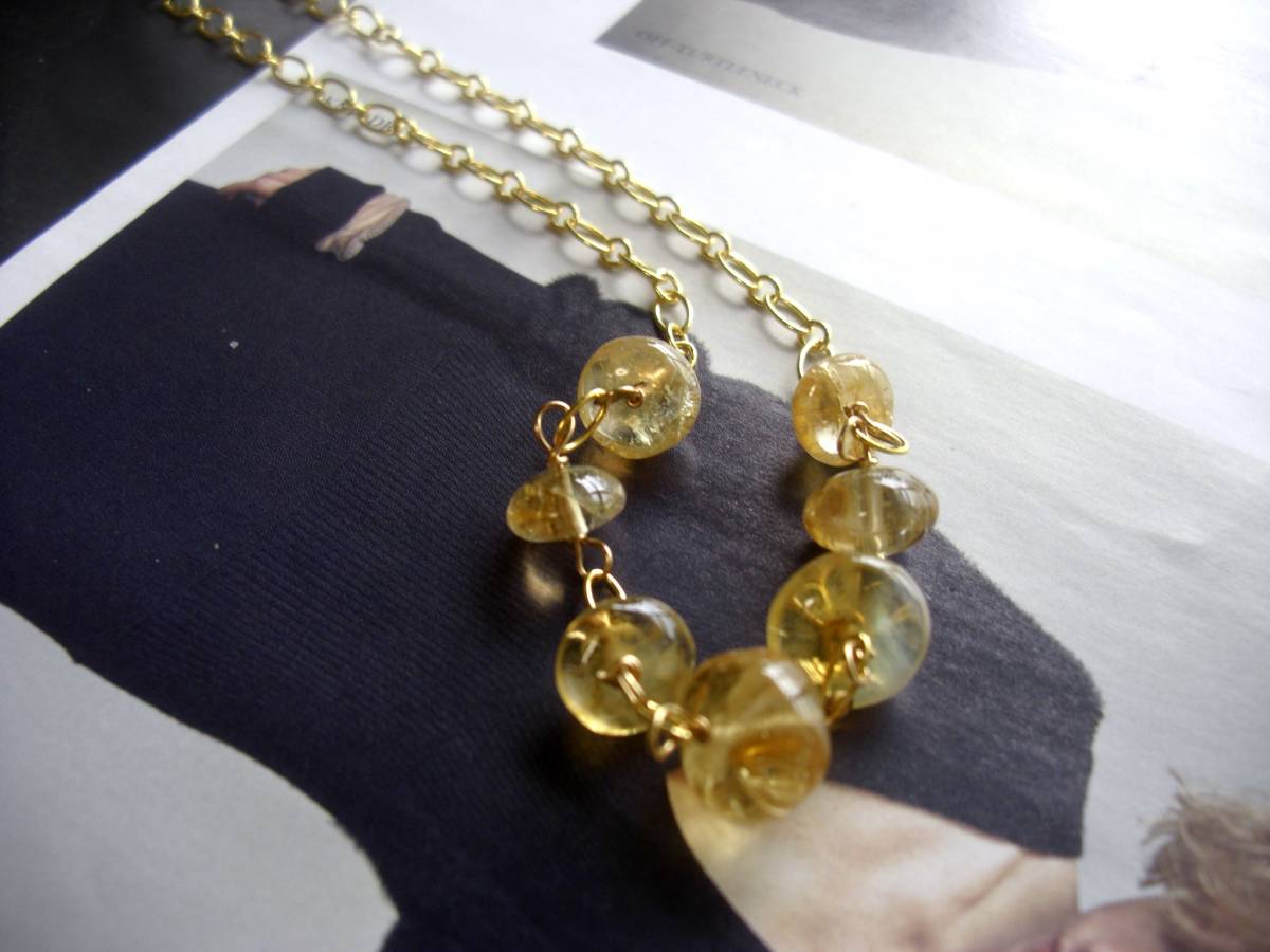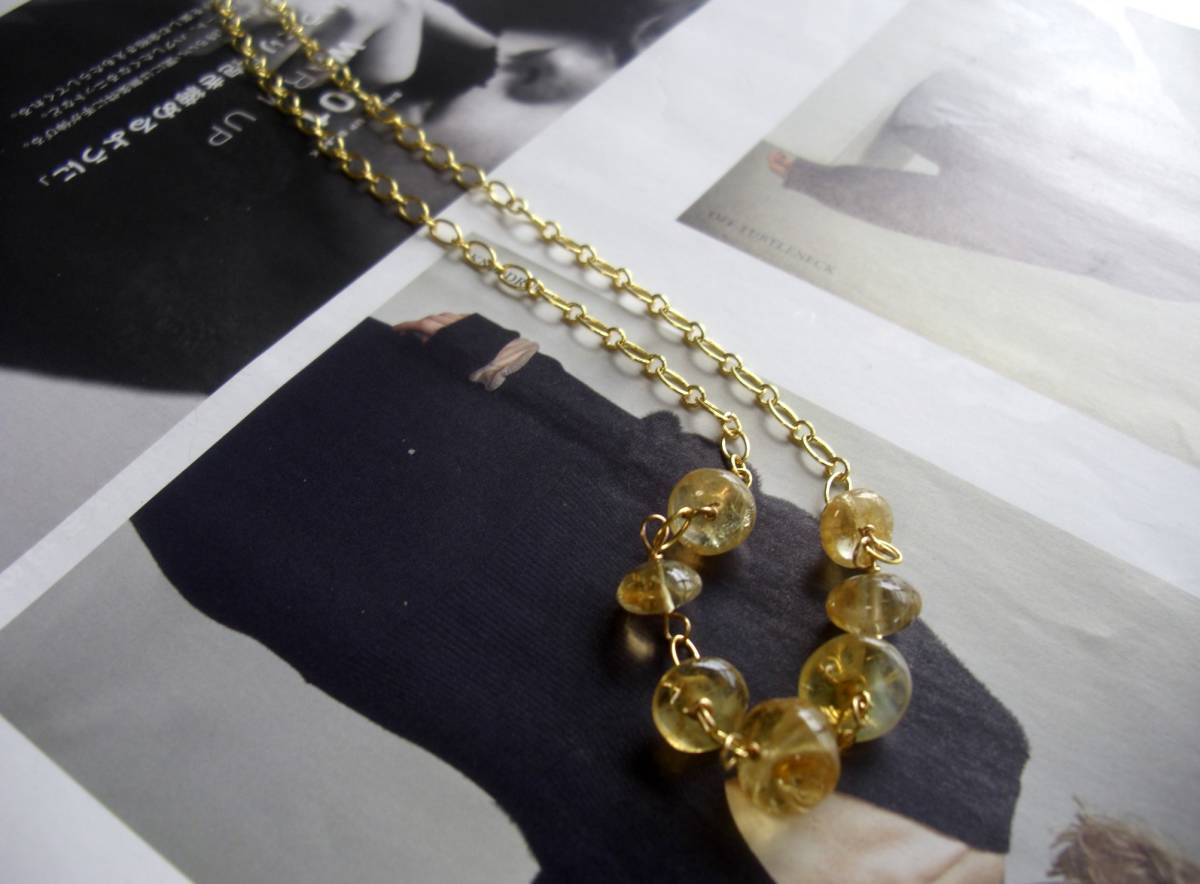 イノセント・ガール・・シリーズです♪巴里色に包まれて・・神秘的なシトリンのネックレスです♪10ミリから 14ミリ位のラフタンブルのシトリンがシックで華やかです♪♪パリの宝石箱をイメージして作りました♪長さは全長70センチ位で調節 自由です♪これからの季 節にさりげなく色々なシーンでお使い頂けたらと思います♪お揃いのネックレスやブレスレット、ピアスも出品しています♪ハンドメイドをご理解頂いてノー クレーム、ノーリターンでお願いします