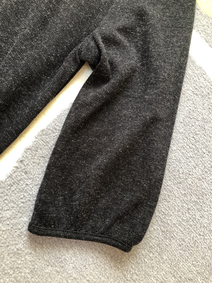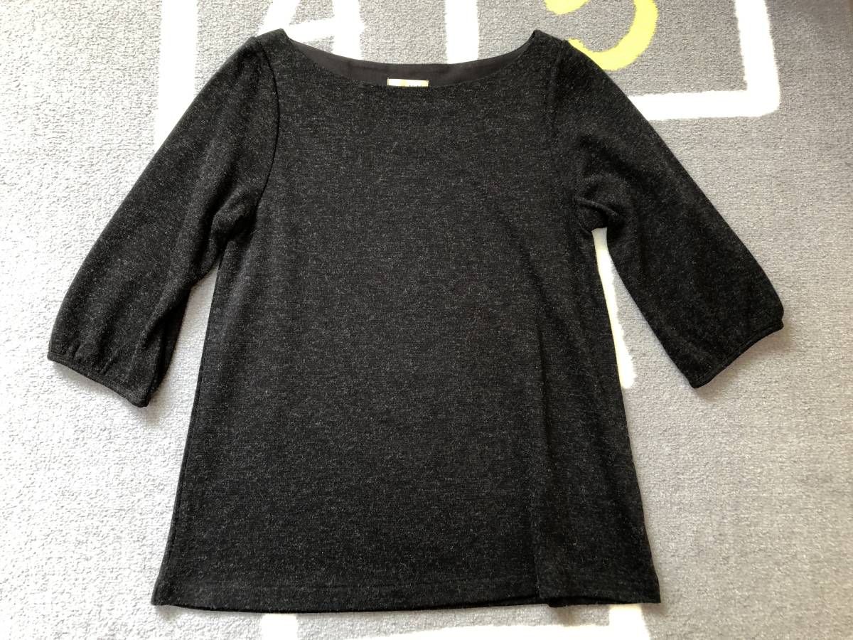 ○薄手のニットです。シンプルなデザインなので合わせやすく1枚あると便利です。お色はチャコールグレーです。