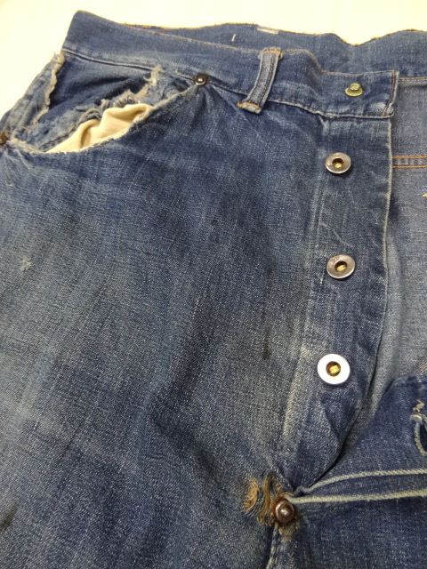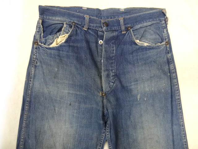 ビンテージ 希少 40S 50S 股 リベット インディゴ デニム ワーク ペインター パンツ ドーナツ ボタン 色落ち アジ 雰囲気 レア 5 ポケット