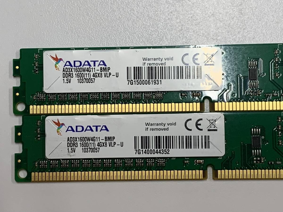 | ADATA DDR3 1600 4GB 中古動作品3枚=8GB | |||