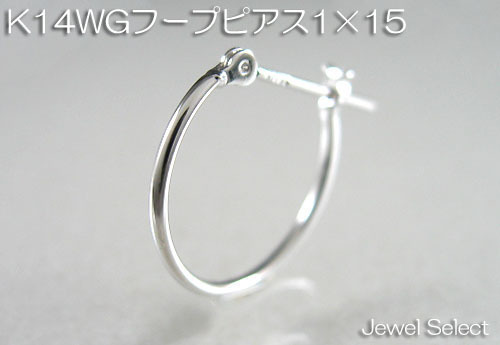 K14WG ホワイトゴールド 1×15 フープピアス 片耳用