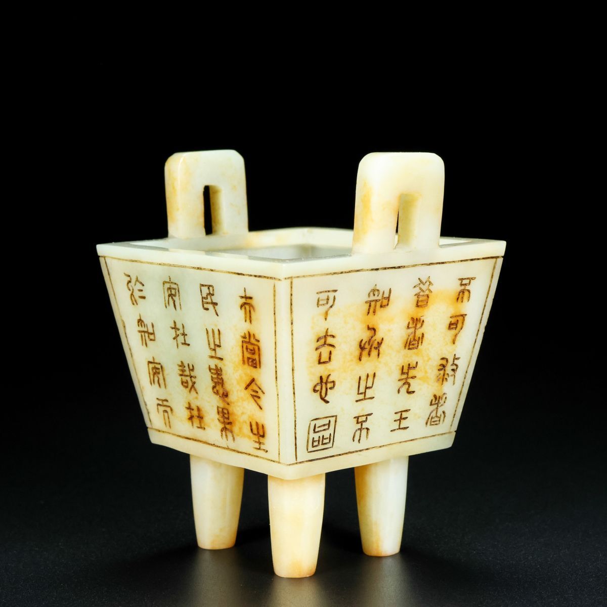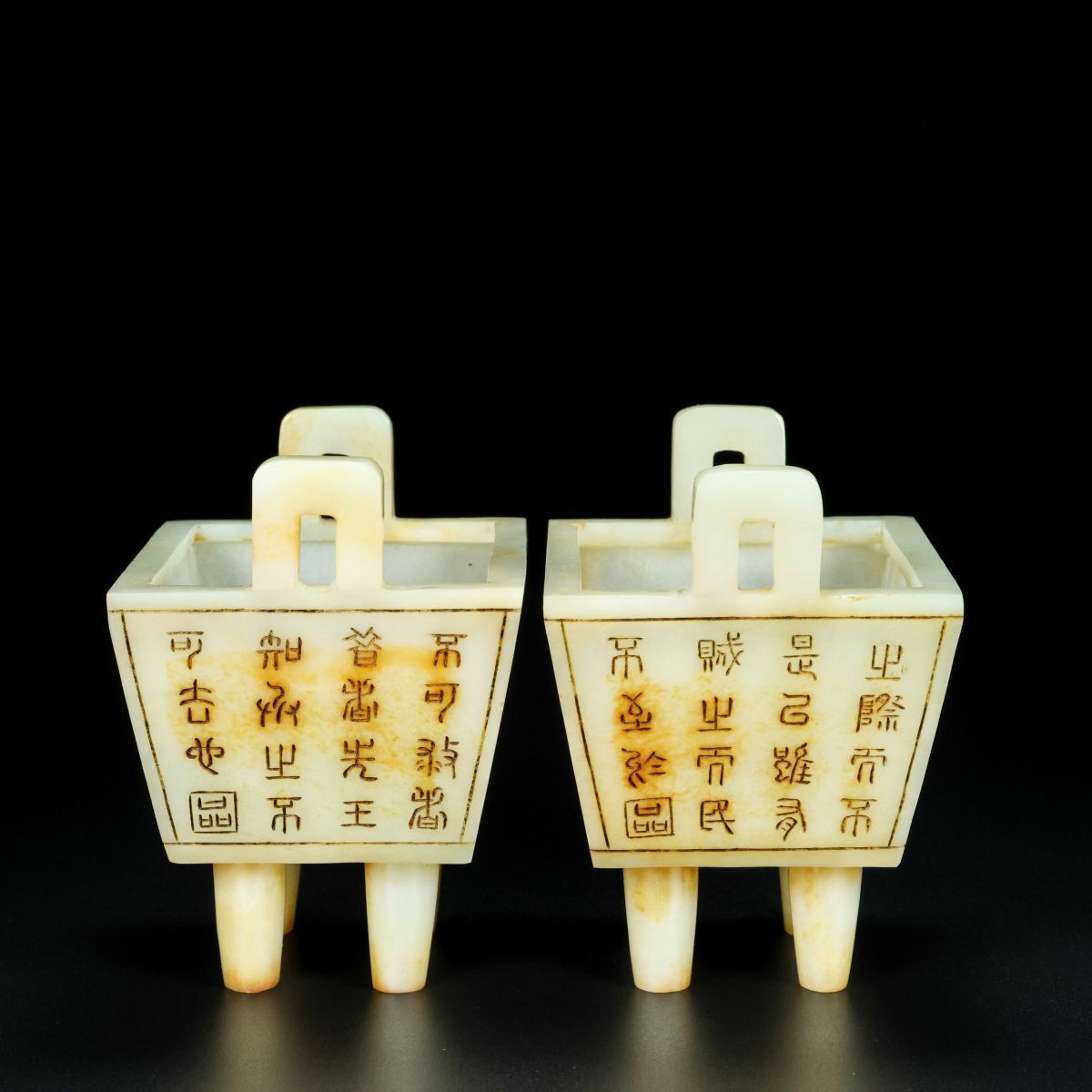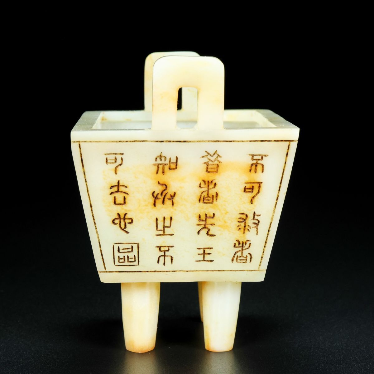 【永】清時代 和田玉彫 老玉 銘文 雙耳香爐 兩點 手彫 極細工 置物擺件 古美術品 時代物 古董品 収集 古美味 骨董品 旧家蔵出中国唐物 312g