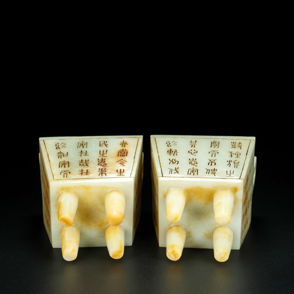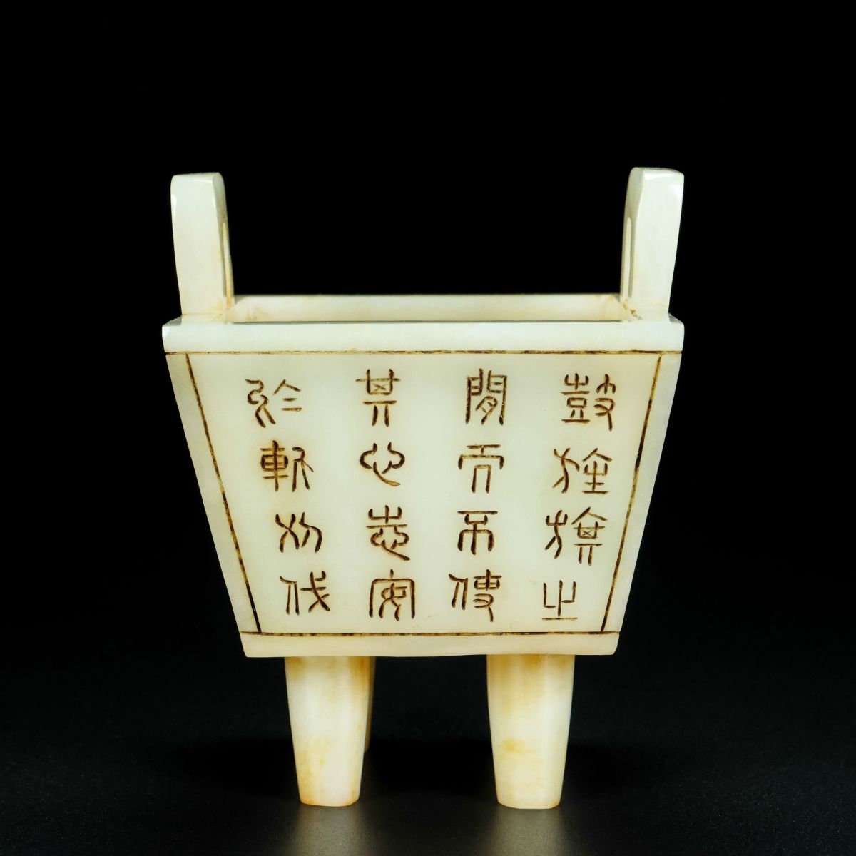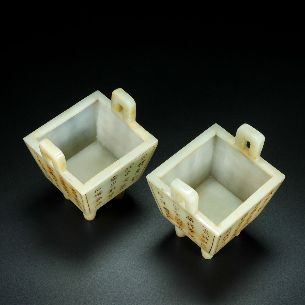 【永】清時代 和田玉彫 老玉 銘文 雙耳香爐 兩點 手彫 極細工 置物擺件 古美術品 時代物 古董品 収集 古美味 骨董品 旧家蔵出中国唐物 312g