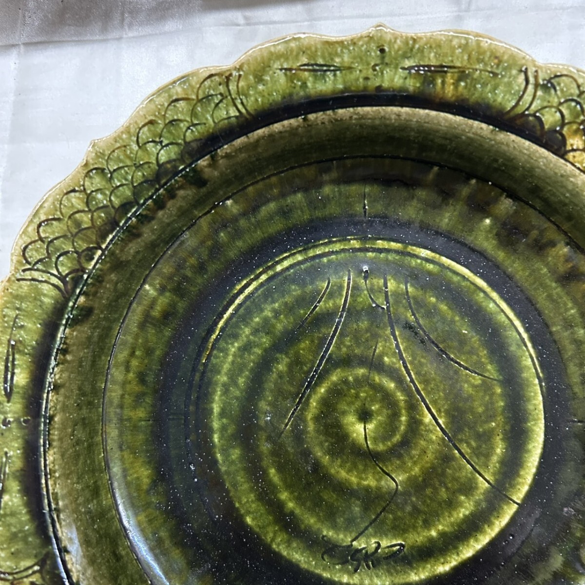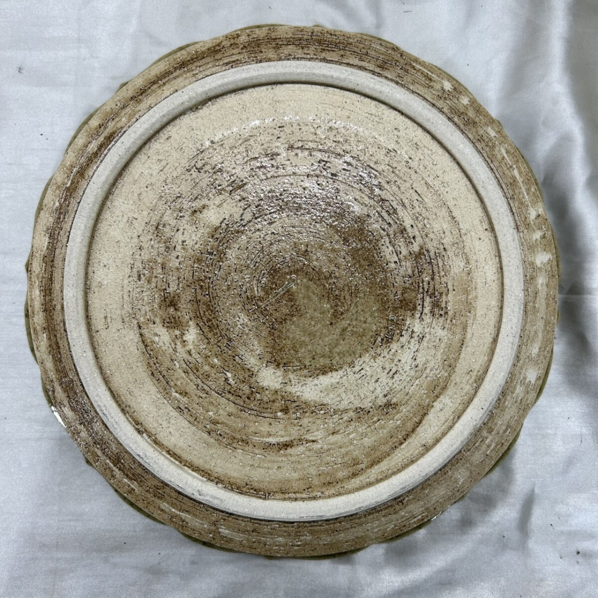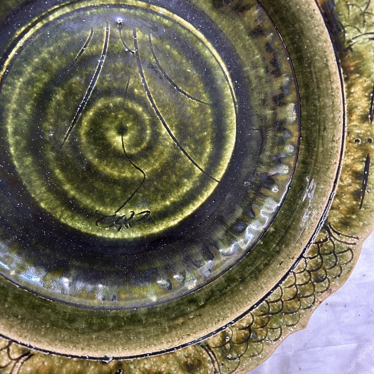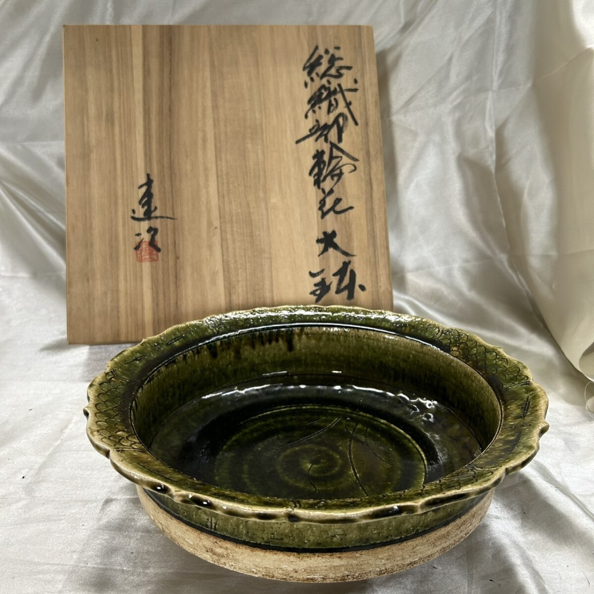 品名: 未使用 織部焼 総織部輪花大鉢 鉢 大皿 茶器 陶器 お皿 食器 大鉢 K13