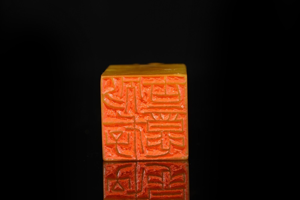 「清 三庚 老寿山石 田黄石彫り 獣鈕印章」極細工 擺件 古賞物 中国古美術 旧蔵出