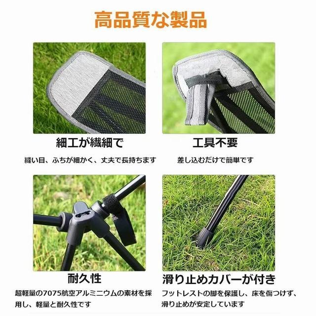 【製品材質】高品質の7075航空アルミニウム合金と600Dオックスフォードの布で作られ、耐久性があり、曲がったり変形したりしにくいです。フットレストだけではなくて、アウトドア椅子としても使用できます。