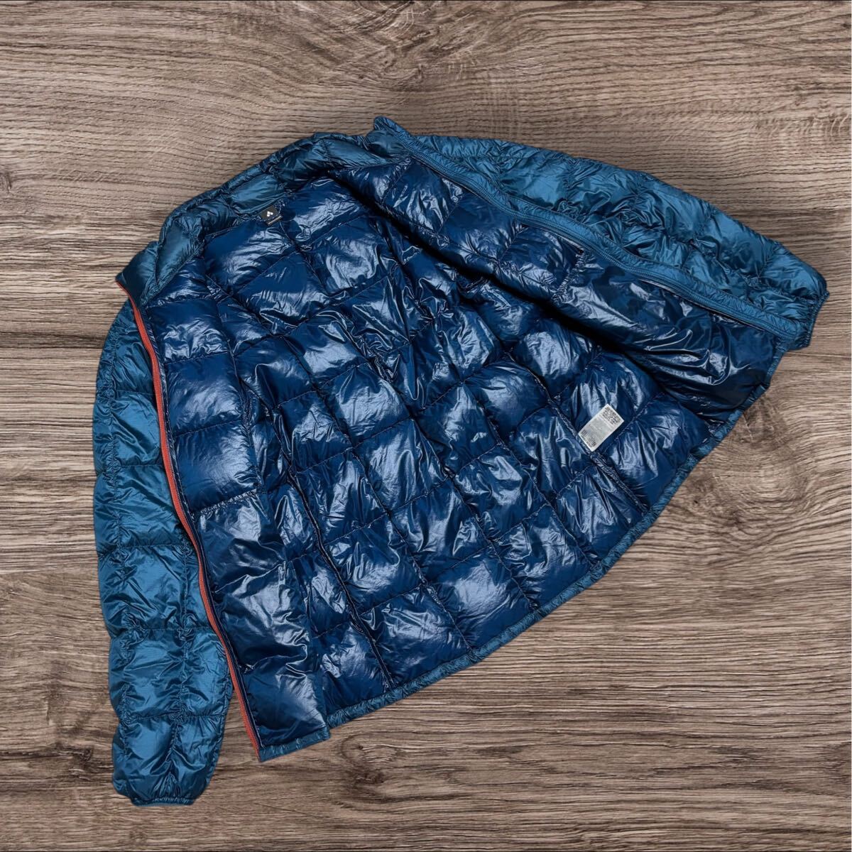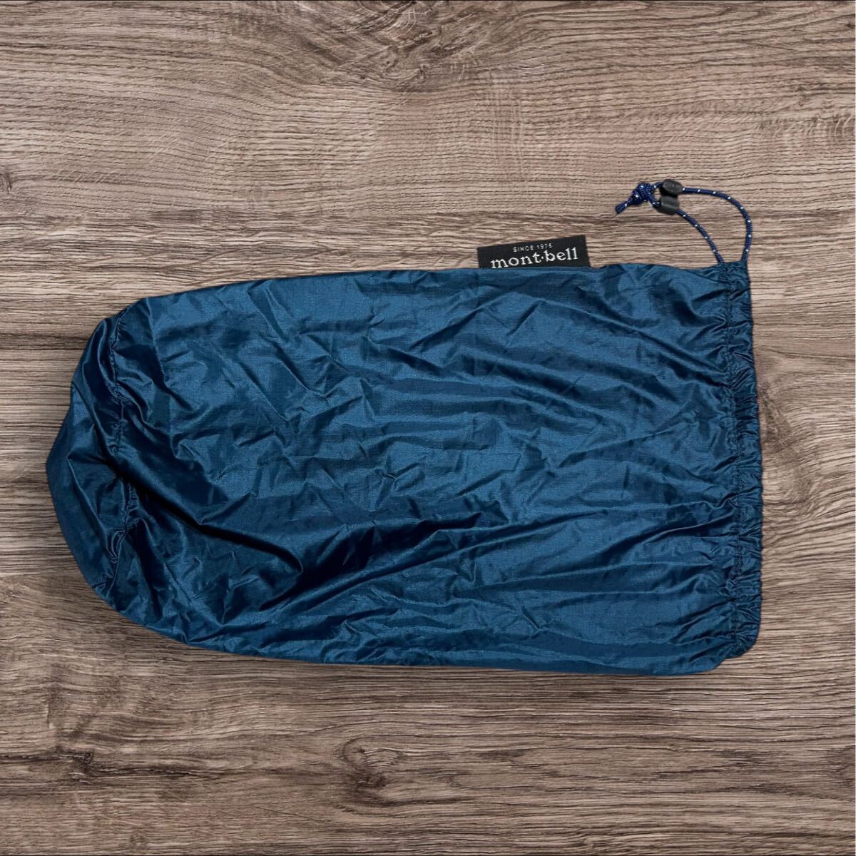 軽量でコンパクトなmontbellの青いダウンジャケット。
