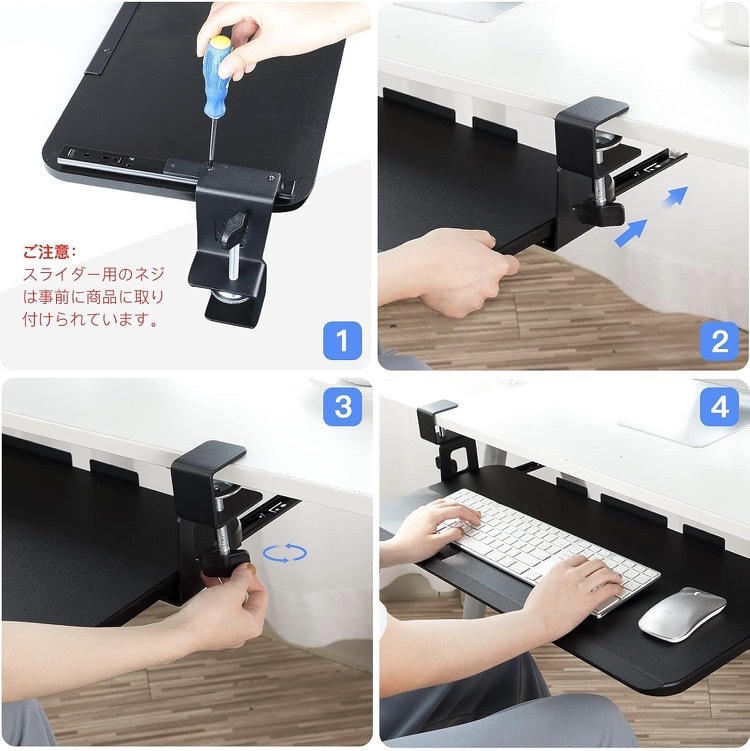 キーボードトレイ キーボードスライダー フルキーボード 幅67センチ 奥行29センチ 耐荷重2KG クランプ式 マウス収納対応 スペース活用