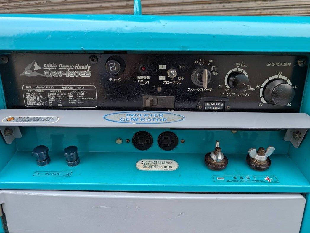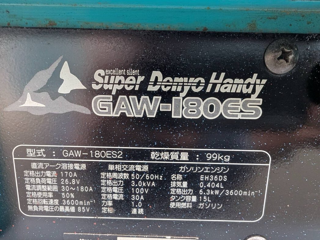 | 商品説明 | (即決)デンヨー・発電・溶接・ウエルダー・GAW-180ES2・1151時間・インバータ発電・整備済 です。 形式 GAW-180ES2(リコイル・セル併用) 1151時間 ガソリン・4サイクル 50/60Hz(切り替え式) 適用溶接棒 2.0~4.0ミリ 補助電源 100V・3.0KVA・30A(インバータ発電) 乾燥重量 99Kg キャブレター新品 エアーエレメント新品 バッテリー新品(VTX12ーBS) 燃料コック新品 燃料ホース一式新品 エンジンオイル交換 消耗品交換 燃料タンク清掃 分解・清掃・点検・調整 再塗装(デンヨー純正) 動作OK(2.0ミリ~4.0ミリ溶接棒テスト済み、発電テスト済み) ※整備済ですので不具合ありません。 全長702 全幅495 全高655 ※オークションシステムにより落札者様の電話番号の表記がしなくなり、発送の際に電話番号が必要の為、 落札後、必ず取引ナビにて電話番号送って頂く様にお願いします。 |