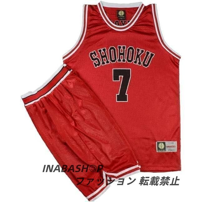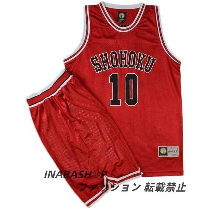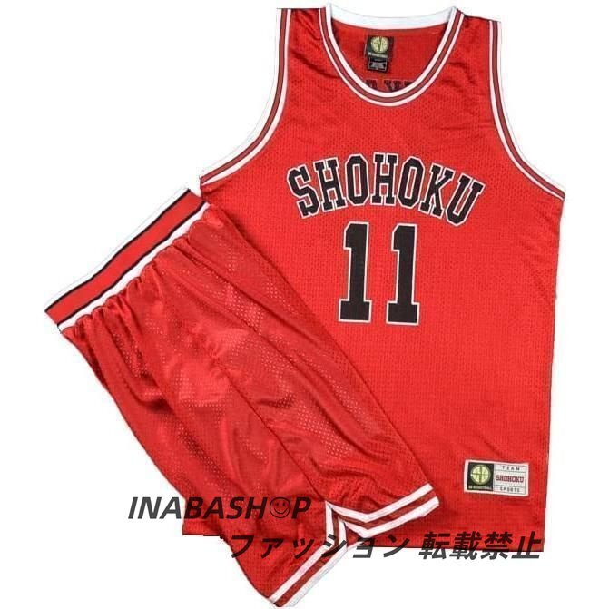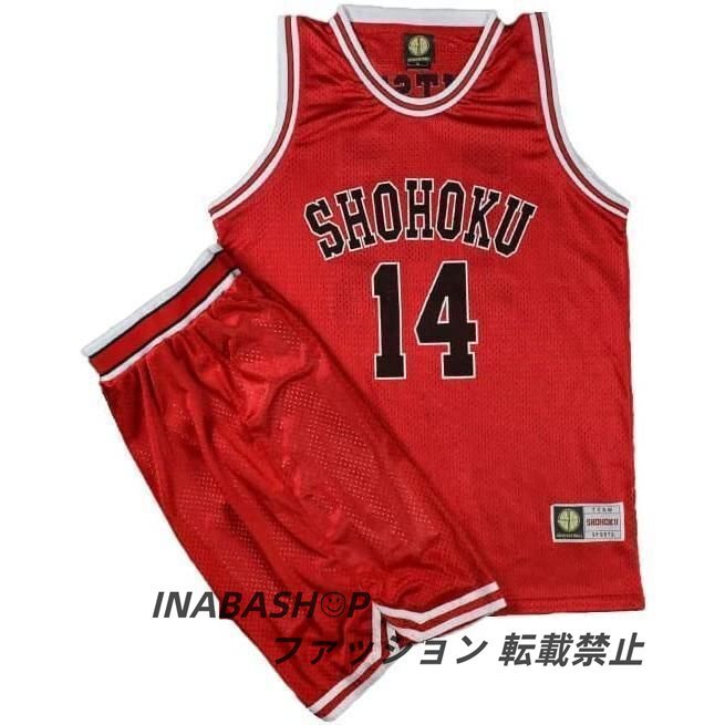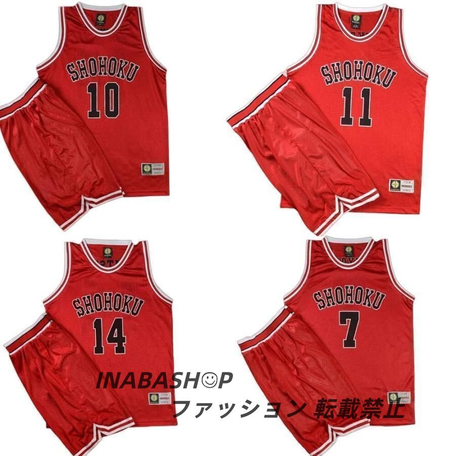 バスケットボールジャージ スラムダンク ユニフォーム 湘北 赤色 背番号10 背番号14 背番号7 背番号11 背番号4 桜木 三井 宮城 流川