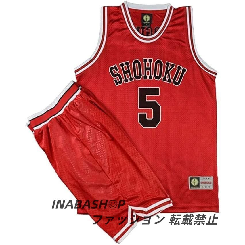 スラムダンク ユニフォーム赤色 背番号10湘北 桜木 背番号14三井 背番号7宮城 背番号11 流川背番号4赤木スポーツ バスケットボールジャージセット