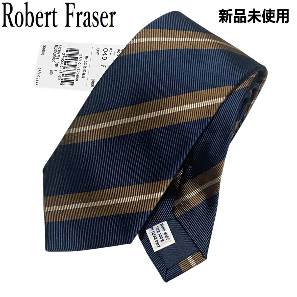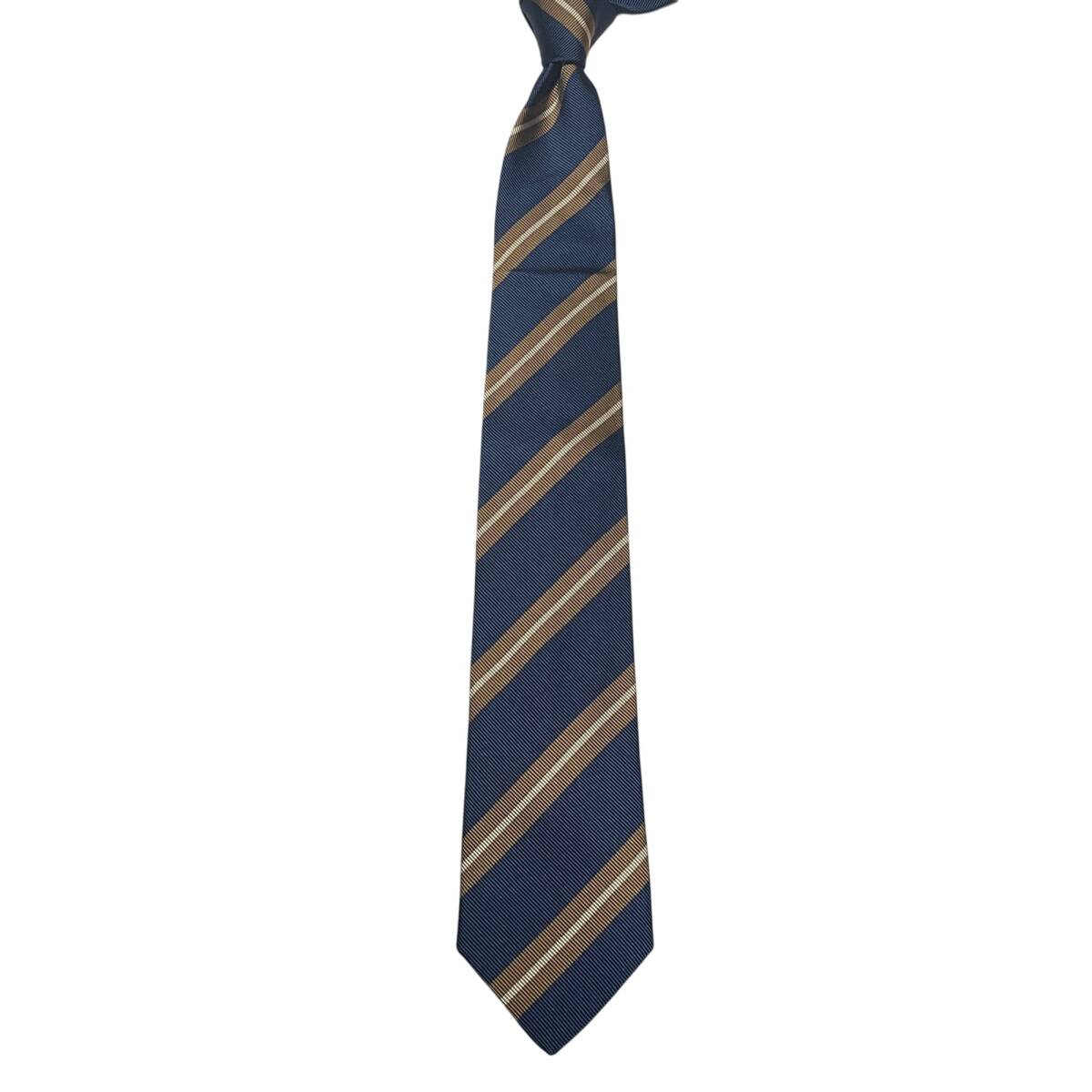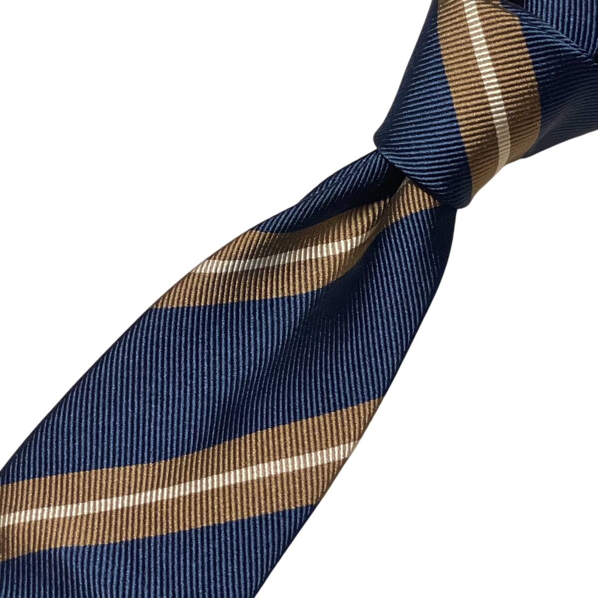 【新品】Robert Fraser ロバートフレーザー ネクタイ レジメンタルタイ ネイビー 紺 ベージュ シルバー ストライプ ビジネス ドレス