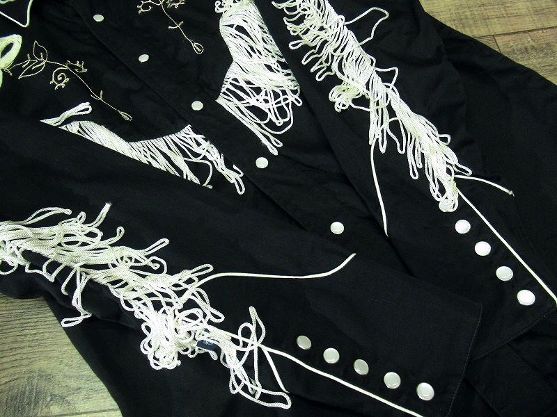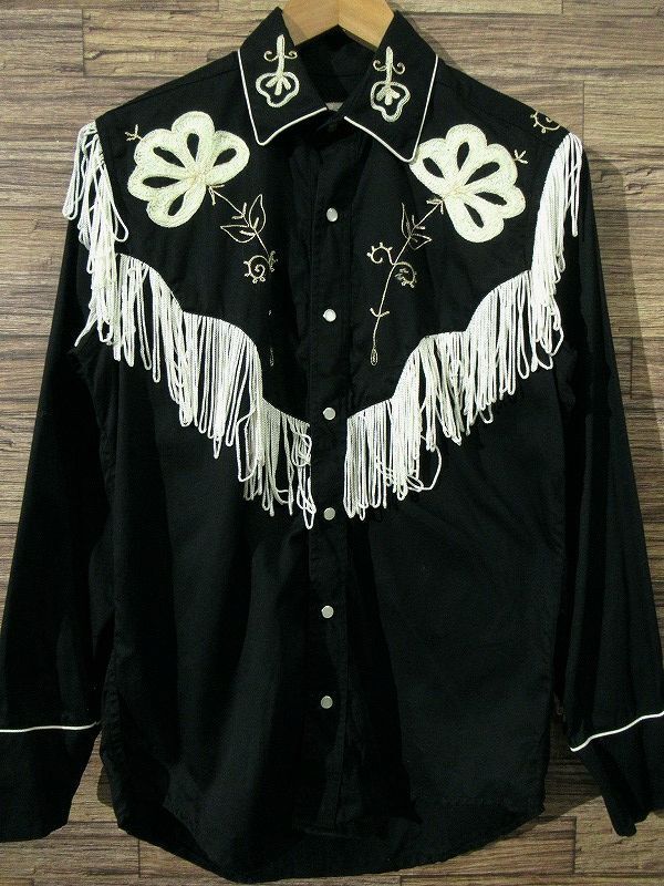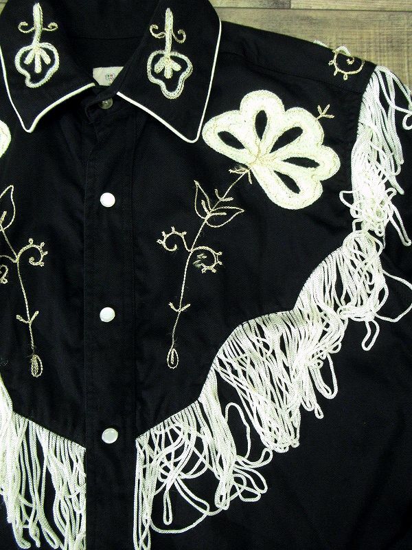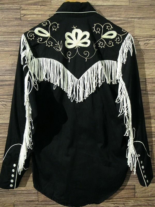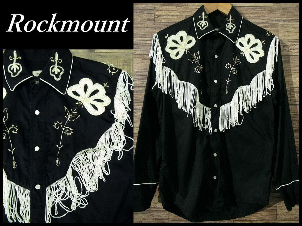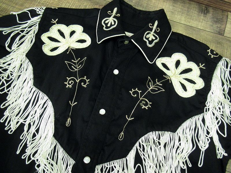 送無 希少 Rockmount ロックマウント レインボータグ 長袖 フラワー チェーン刺繍 フリンジ 装飾 コットン ウエスタン シャツ ロカビリー