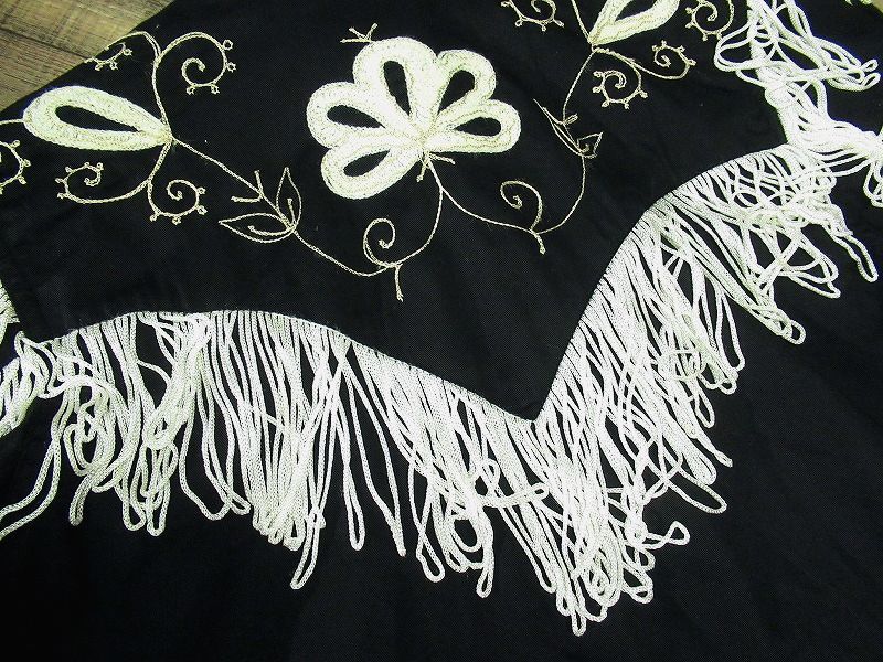 長袖 フラワー チェーン刺繍 両面 フリンジ 装飾