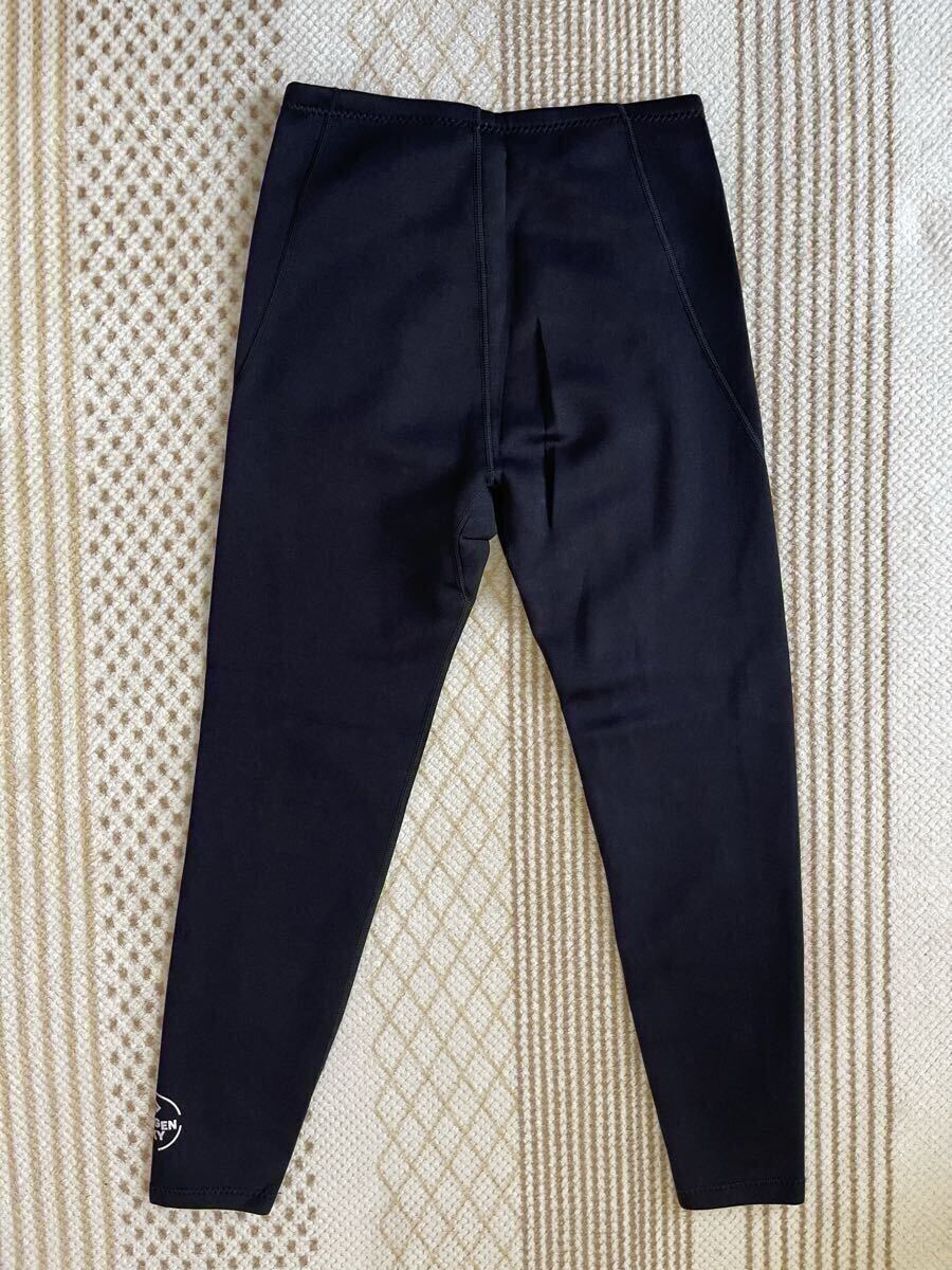 このパンツは、ウェットスーツにも使われるネオプレン素材で作られており、非常に高い保温性と伸縮性が特徴です。マリンスポーツでのウェットパンツとしてだけでなく、サウナスーツとして発汗を促すトレーニングウェアや、釣りや沢登りといった水辺でのアクティビティの防寒インナーとしても幅広くご活用いただけます。ブラックカラーで、ウエストにはフィット感を調節できるドローコード(紐)が付いています。