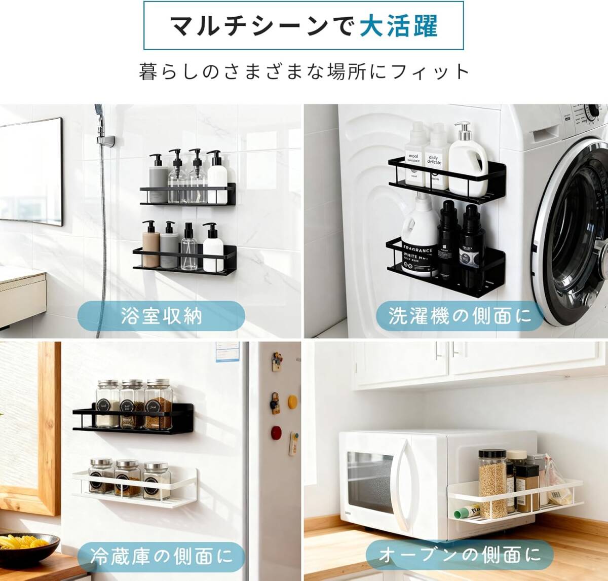 ホワイト色 2個セット GOENDR 浴室用ラック マグネット お風呂 バスルーム 洗面所 トイレ キッチン 収納 調味料ラック 洗濯機